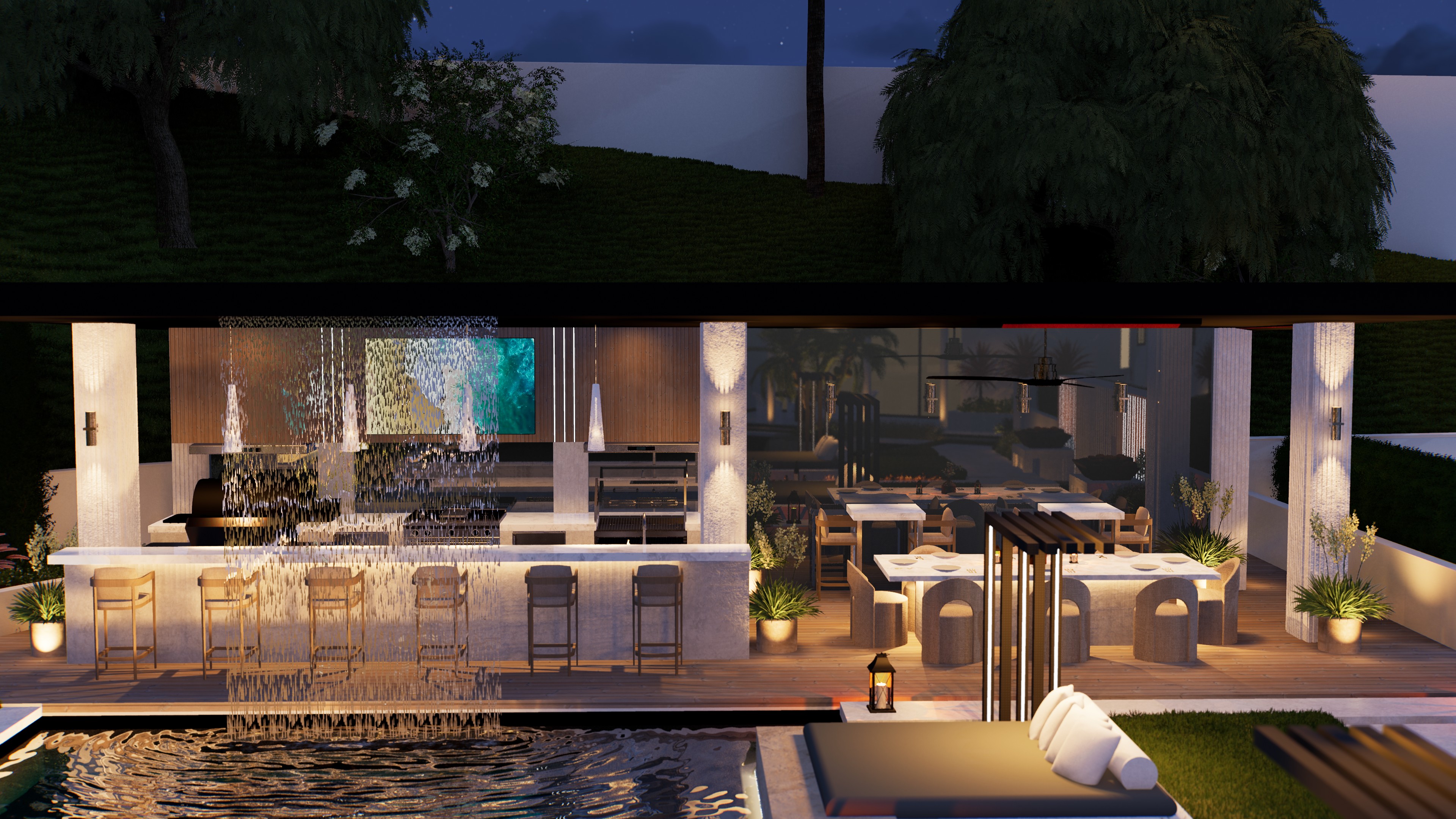 exterior shot render a detailed image of a partially constructed wooden roof with exposed rafters vibrant and rich brown tones for the wood the background features a clear bright blue sky large windows reflect the surroundings and are in a sleek black frame contrasting with the rustic texture of the wood the exterior walls are light off white adding a touch of elegance the atmosphere is serene and inviting capturing a perfect blend of natural elements and architectural design