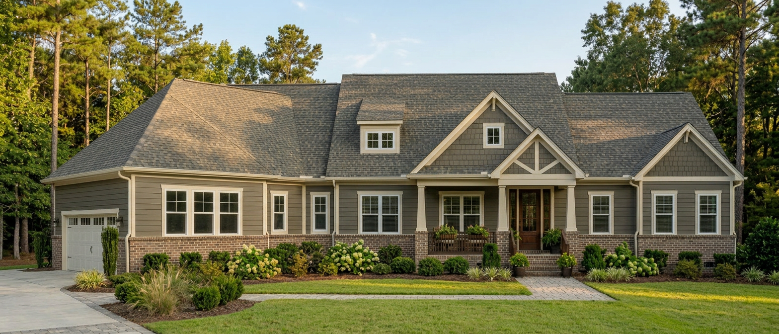 photorealistic architectural rendering of a modern industrial warehouse building with the exact same geometry and parking layout as the source model the site design incorporates blue green stormwater management solutions parking areas use permeable paving with subtle stone texture between parking rows are linear rain gardens with native grasses sedges and low shrubs designed for stormwater infiltration along the edge of the site are bioswales with natural stones wetland plants and lush vegetation that collect and filter rainwater small planted depressions and infiltration beds are integrated into the landscape the design has a clean nordic industrial aesthetic with ecological landscape design materials include concrete paving permeable pavers natural stone edges and planted rain gardens soft realistic daylight slightly overcast nordic sky professional architectural visualization highly detailed photorealistic
