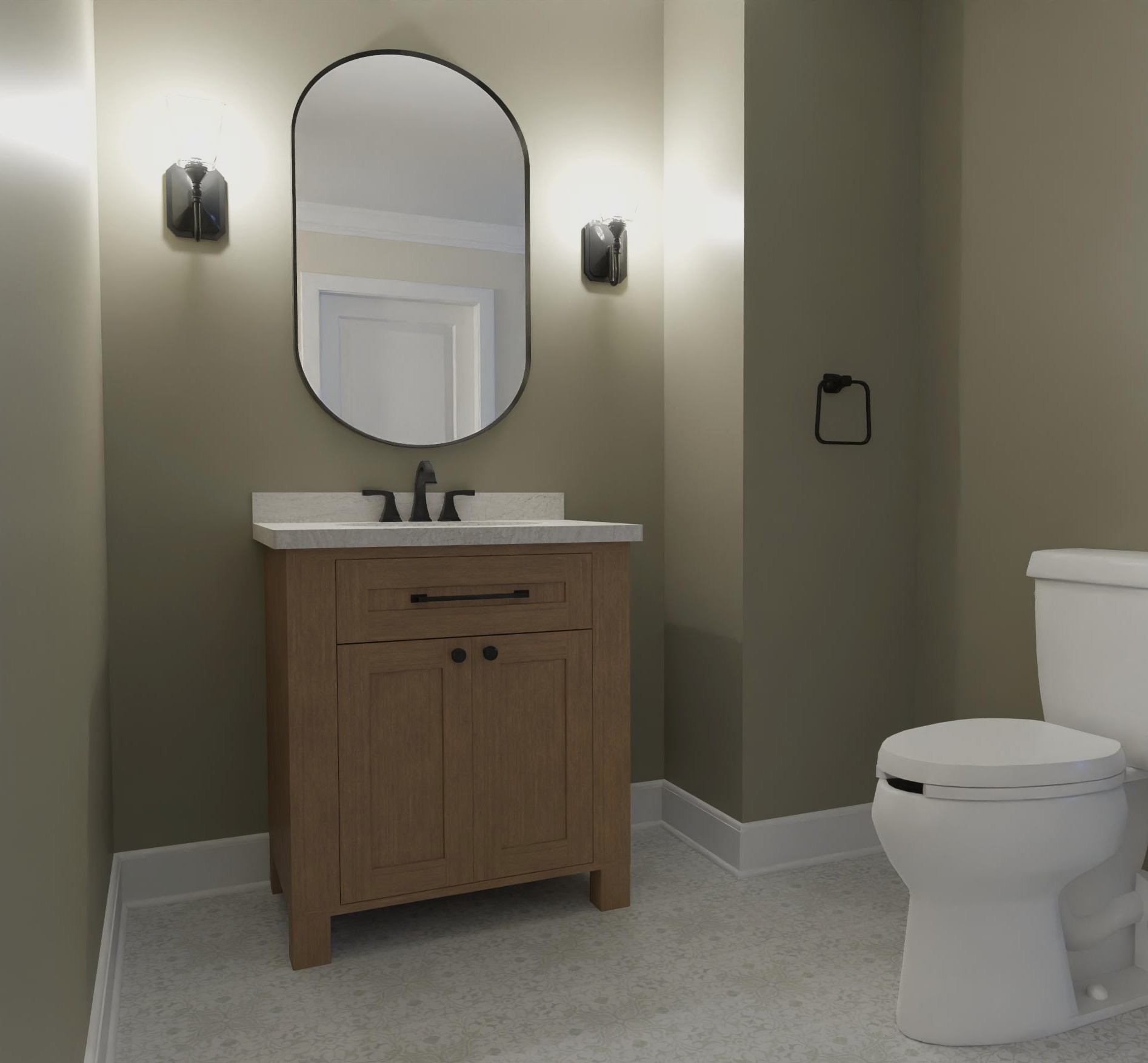 lightly accessorize this powder room please add a towel to the towel ring on the wall