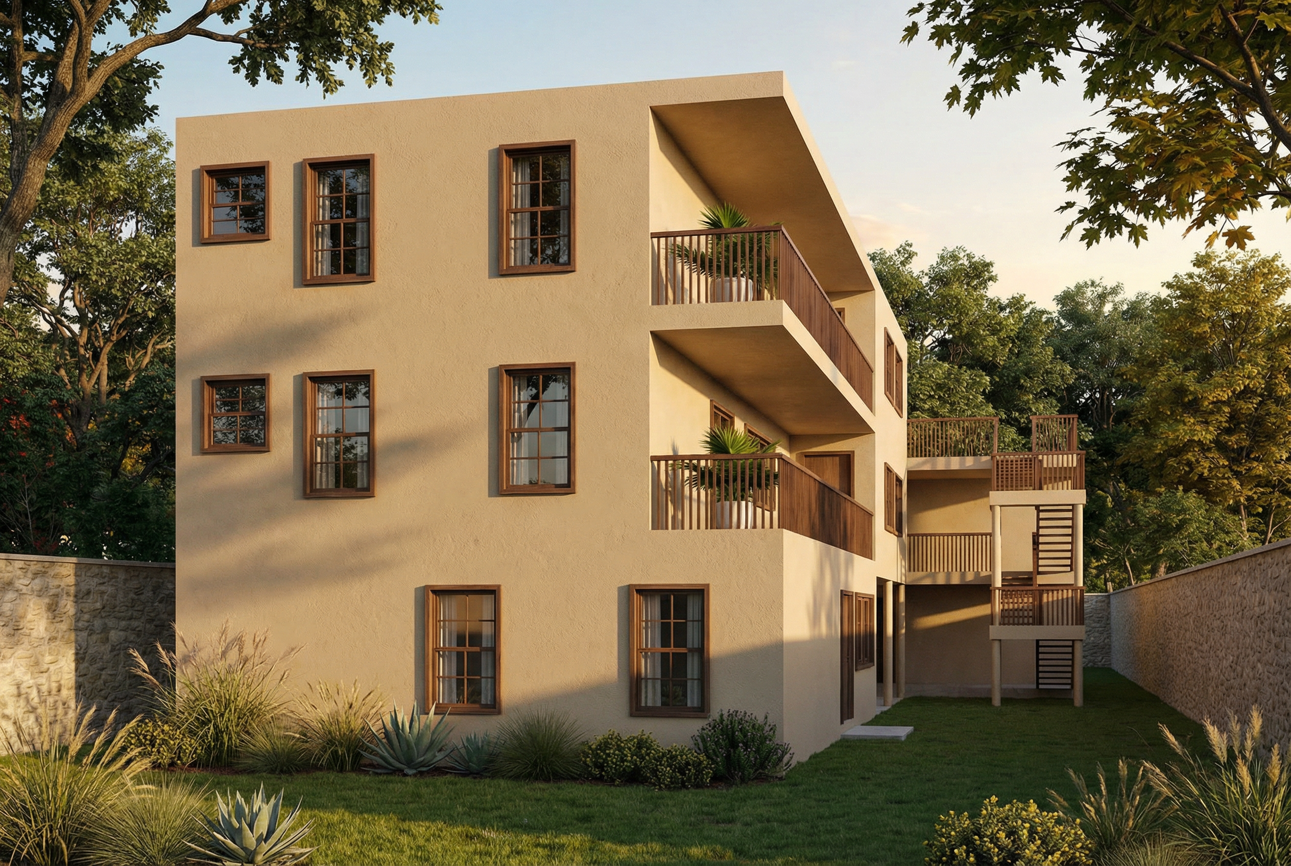 make as photorealistic as possible while keeping textures the same as selection professional landscaping in a lightly wooded scene with good lighting white siding black trim black porch railing and black garage door