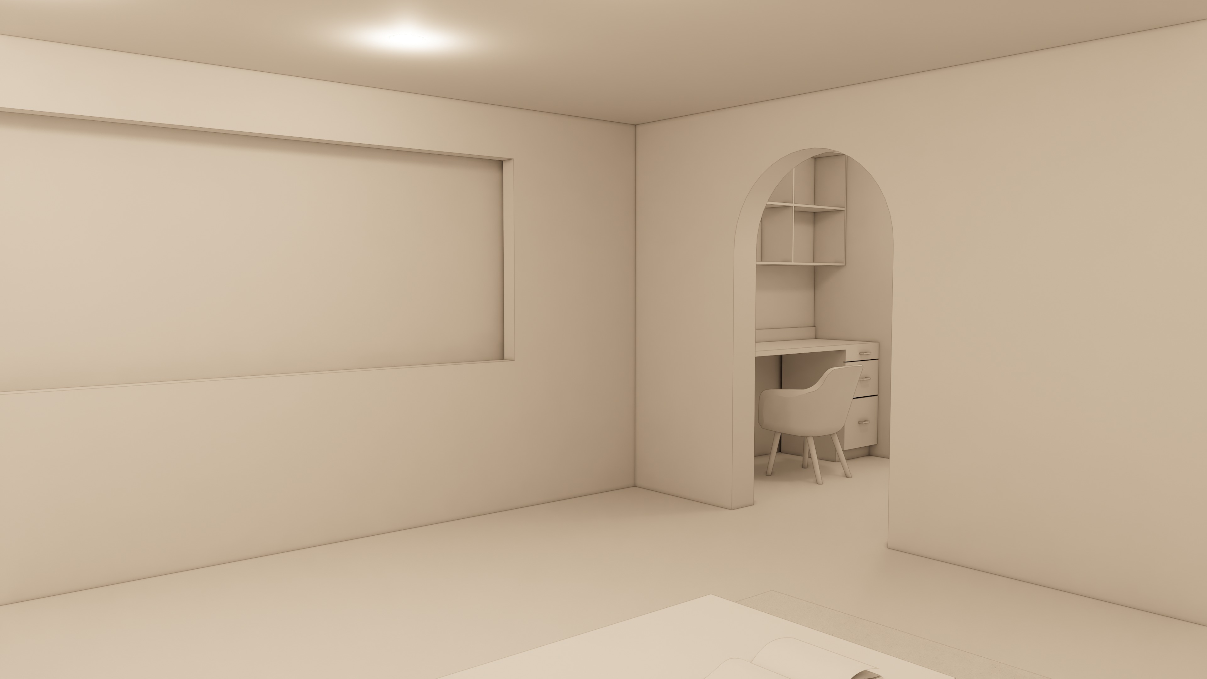 add materials and lighting use luxury modern minimalist style turn the wall with the rectangle into an entertainment center add wood flooring to the office nook add carpet to the main room the main room is a living room not a bedroom