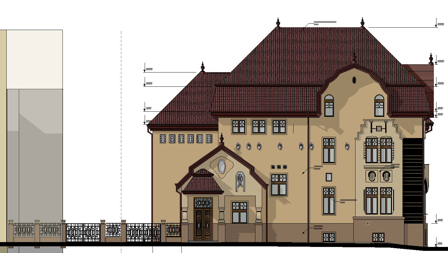sunny day brick color roof with modern flat scale tiles cinemativ hyperrealistic render