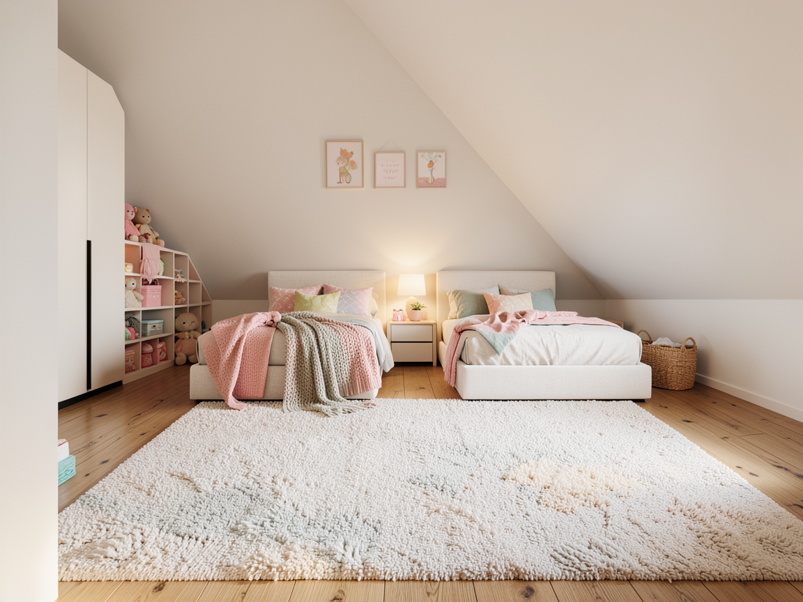 transform this empty space into a high end furniture and kitchen showroom place a full width modern kitchen along the back wall with a mix of dark matte and warm wood finishes including integrated appliances and soft led lighting in front of it add two different kitchen islands one with bold natural stone and one minimal light toned design on the left side create a living setup with a light colored sofa armchairs coffee table and rug on the right side create a second living area with a darker sofa and different style chairs to show variation add large format tile panels on the back wall behind the kitchen use ceiling track lighting with warm 3000k tones and pendant lights above the islands keep everything minimal architectural and high end do not change the camera perspective