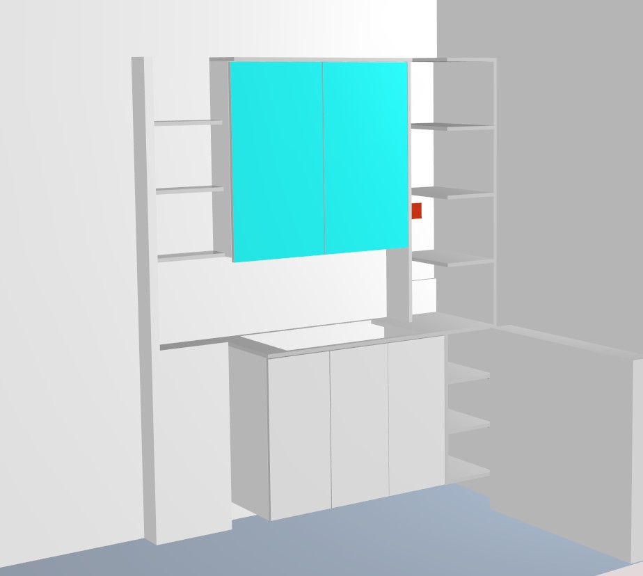 have a furnished bathroom cabinets proportions and dimensions should not change it should be photorealistic light marble pattern no toilet needed the sink is placed on top the blue cabinet door is a mirror
