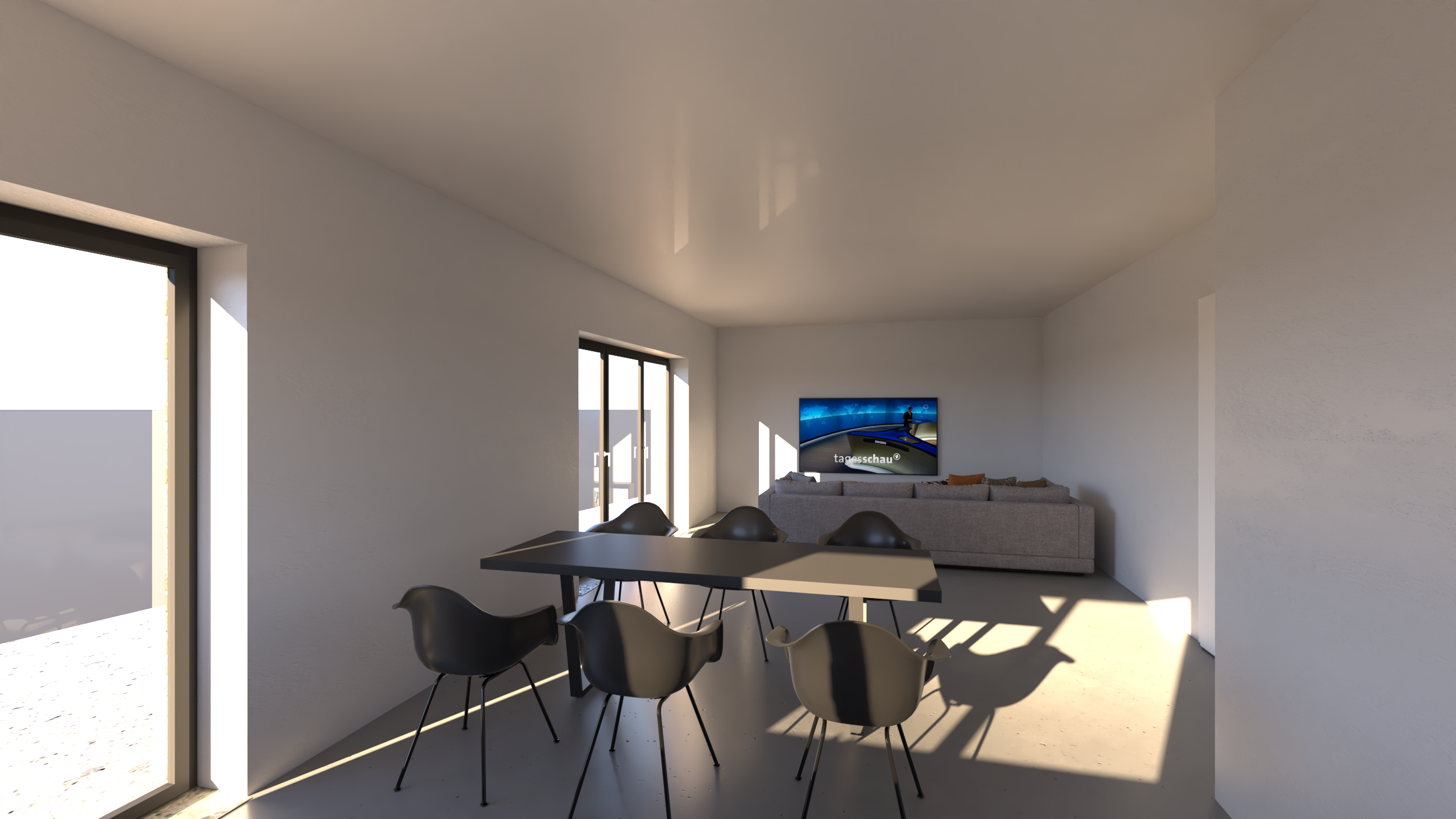 core instruction highest priority convert the provided prerender into an ultra photorealistic architectural photograph while preserving the architecture exactly as in the input image critical constraint the following must remain 100 unchanged architecture geometry floor plan walls and openings windows and doors ceiling heights camera position perspective spatial proportions do not redesign or reinterpret the architecture only enhance materials lighting furnishing and photographic realism interior scene the image shows the interior of a modern german single family house einfamilienhaus with calm high end contemporary interior design the atmosphere should resemble professional editorial architectural photography similar to architectural digest materials bright natural oak plank flooring light oak wood floor with subtle natural grain and color variation matte finish with realistic micro reflections additional materials matte white interior walls natural oak accents linen and wool fabrics light natural stone surfaces brushed metal details all materials must show natural imperfections and micro texture interior styling elegant minimalist contemporary residential interior important constraints no indoor plants only a few carefully selected framed artworks on the walls calm and uncluttered styling furniture large sofa in the foreground sofa upholstered in bright light colored premium fabric extremely realistic textile rendering subtle natural fabric folds and texture elegant contemporary design lighting fixtures white recessed ceiling downlight spots evenly and regularly distributed across the ceiling minimalistic architectural integration lighting scenario warm summer morning sunlight soft natural sunlight entering through windows long soft shadows realistic daylight atmosphere lighting characteristics physically correct daylight 5200 5600k natural global illumination realistic light bounce across surfaces exterior visible through windows typical german suburban single family housing neighborhood exterior environment neighboring detached houses brick fa ades klinker facades typical for german houses houses partially obscured by trees and shrubs garden elements well maintained green lawn terrace with outdoor furniture weber grill on the terrace natural garden vegetation the exterior should feel authentic and naturally integrated with the lighting of the interior architectural photography style professional architectural editorial photography camera characteristics full frame professional camera 24 35mm architectural interior lens tripod mounted perfectly straight vertical lines image characteristics natural hdr exposure subtle depth of field realistic reflections in glass surfaces balanced contrast and natural color grading the final result should look like a real architectural magazine photograph ultra realism details include subtle micro details that increase realism minimal dust particles visible in sunlight realistic glass reflections slight variation in wooden floor planks subtle material imperfections natural fabric wrinkles on the sofa rendering quality extreme photorealism physically based rendering ray traced reflections global illumination ultra detailed textures 8k architectural photography realism the final image must be indistinguishable from a real photograph negative prompt anti cgi avoid cgi look artificial lighting plastic looking materials unrealistic reflections overly perfect surfaces exaggerated hdr stylized interiors indoor plants cluttered decoration distorted geometry changed architecture altered floor plan low resolution textures cartoon or illustration style