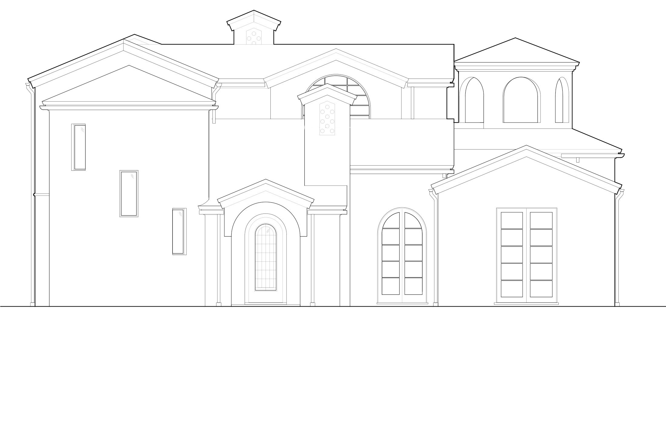 turn blueprint into a realist render the stair tower on the left with 3 windows should be rounded add english garden inspired plants and flowers to the landscaping the stucco should be a warm white
