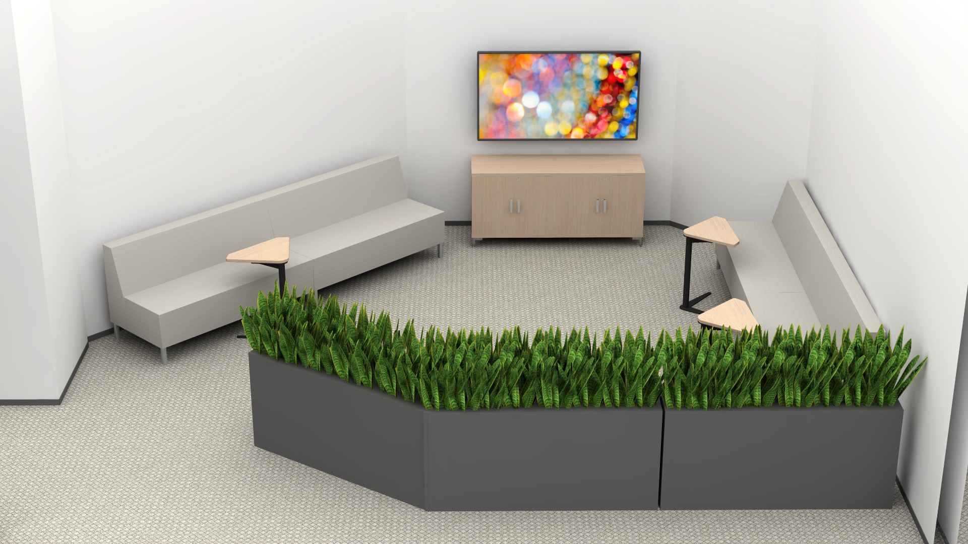 add office lighting add decor on credenza add artwork on the walls