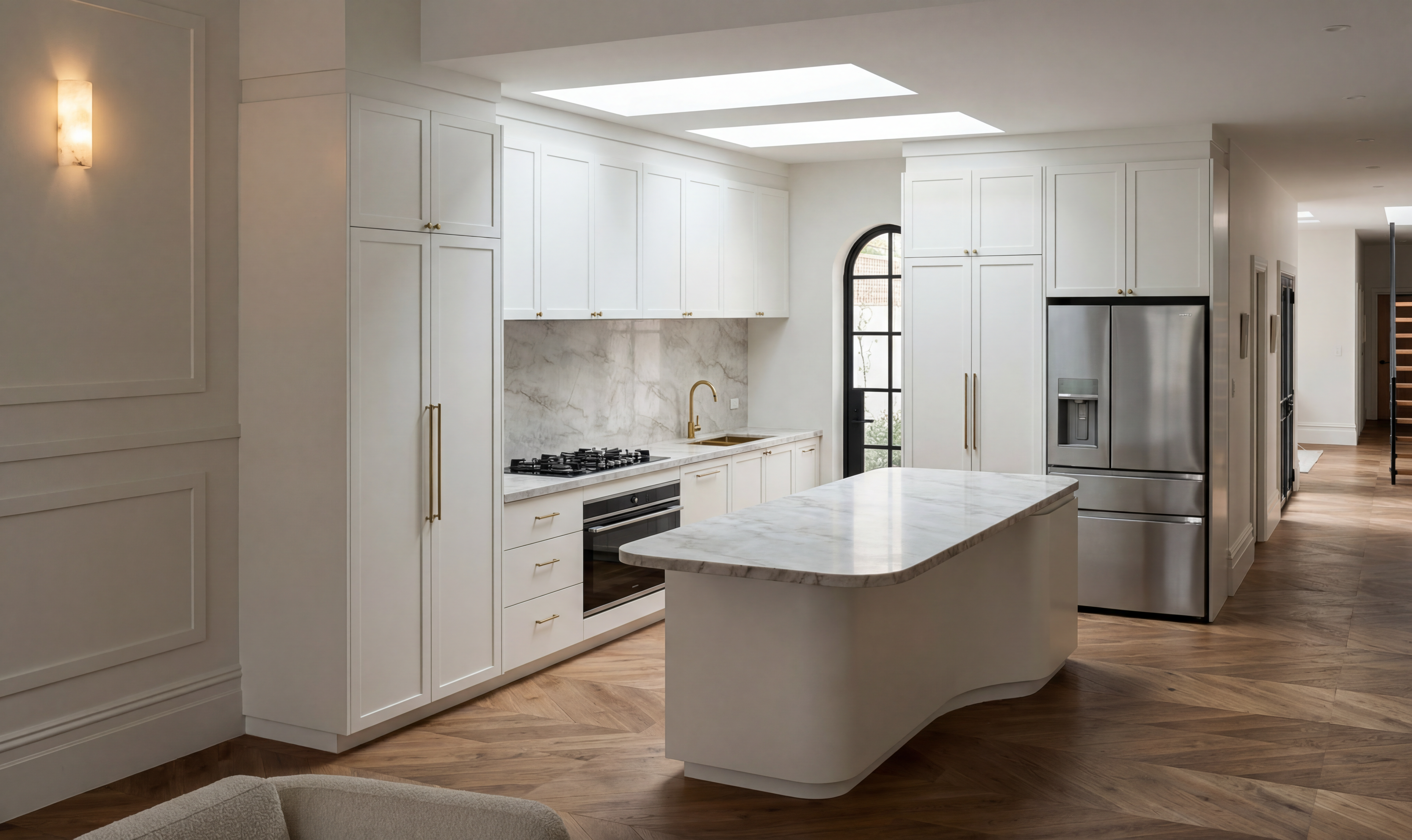 f ge mir 2 personen ein am besprechungstisch mit laptop eine wasserflasche und orangensaft mit 2 gl sern am tisch als dekoration mach das licht nat rlicher und das glas beim glast rportal als transparentes milchglas darstellen behalte alle farben und materialien bei