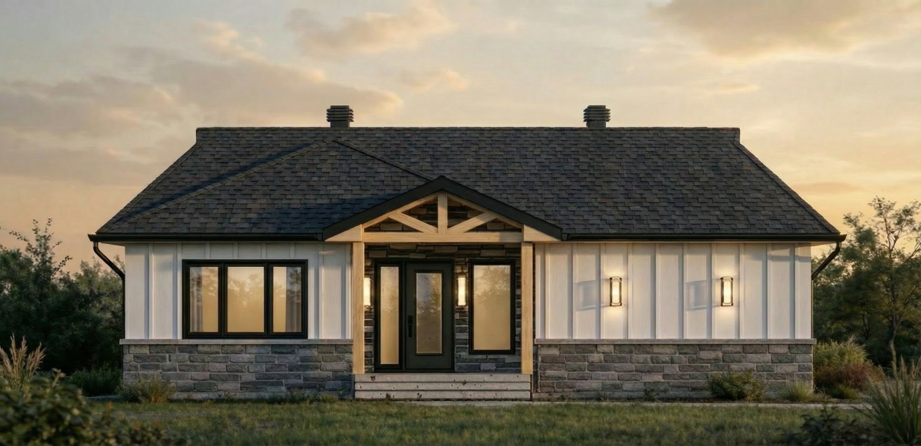 the wooden triangle on the porch roof make them black but keep the columns and trinagle the same colour