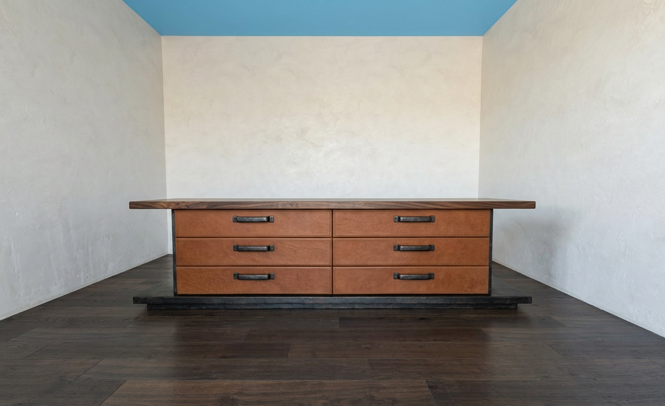 keep everything the same but the drawer faces should be cognac leather