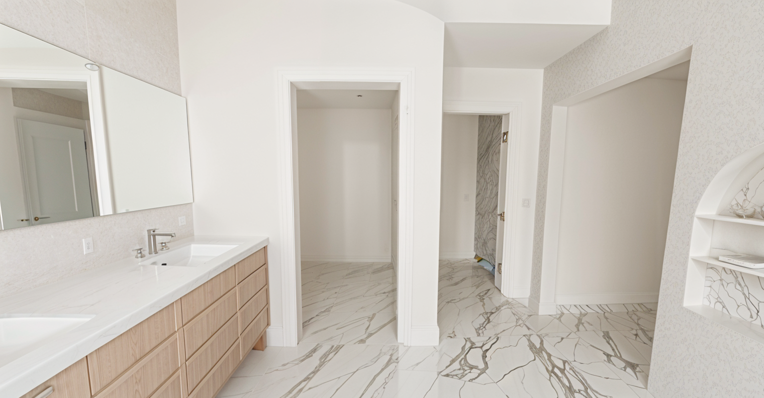 a beautiful beach house under a clear blue sky the house is painted in soft aqua with white trim exuding a coastal charm the roof is a warm beige blending harmoniously with the tropical palm trees surrounding the house the driveway is a light sandy color complementing the lush green lawn two sleek black luxury cars are parked in the driveway adding a touch of modern elegance the atmosphere is serene and inviting a perfect sunny day by the sea opening in front of car on right is open to yard beyond