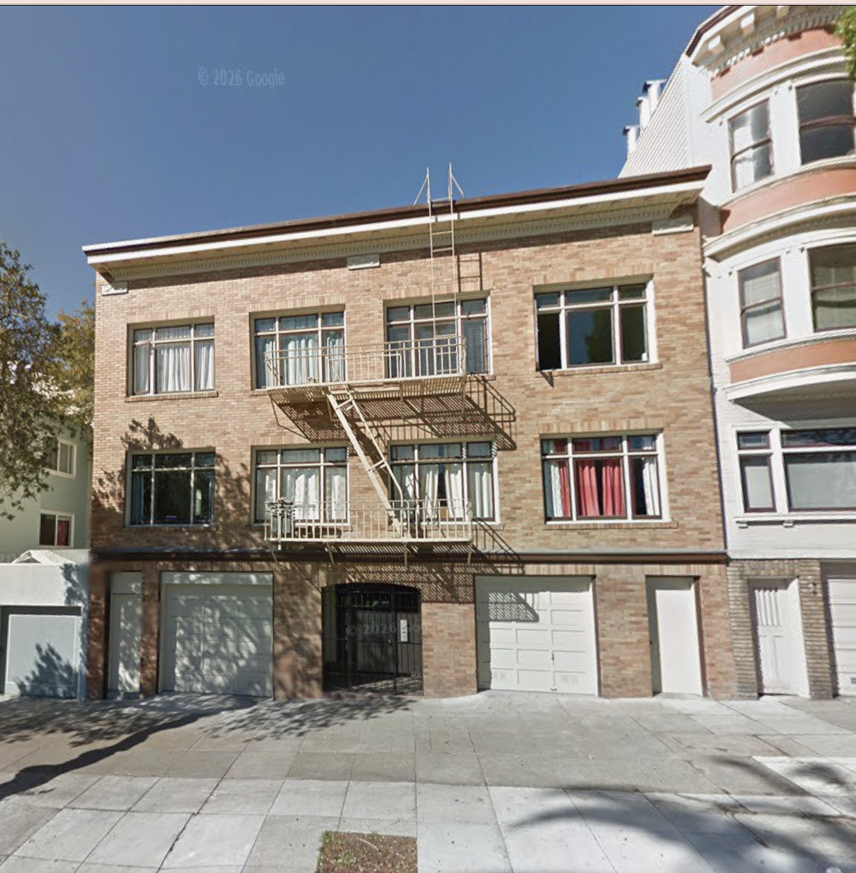 right side garage door open with a glimpse of a white box minimal victorian furniture gallery inside 3 peices armoire sette side table