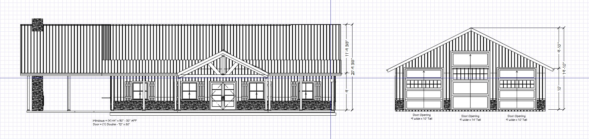 render this in modern farm house style black metal roof white board batten wood porch trim no wainscotting grey stone on the fire place nicely landscaped to match east tennessee terrain and vegetation architecture