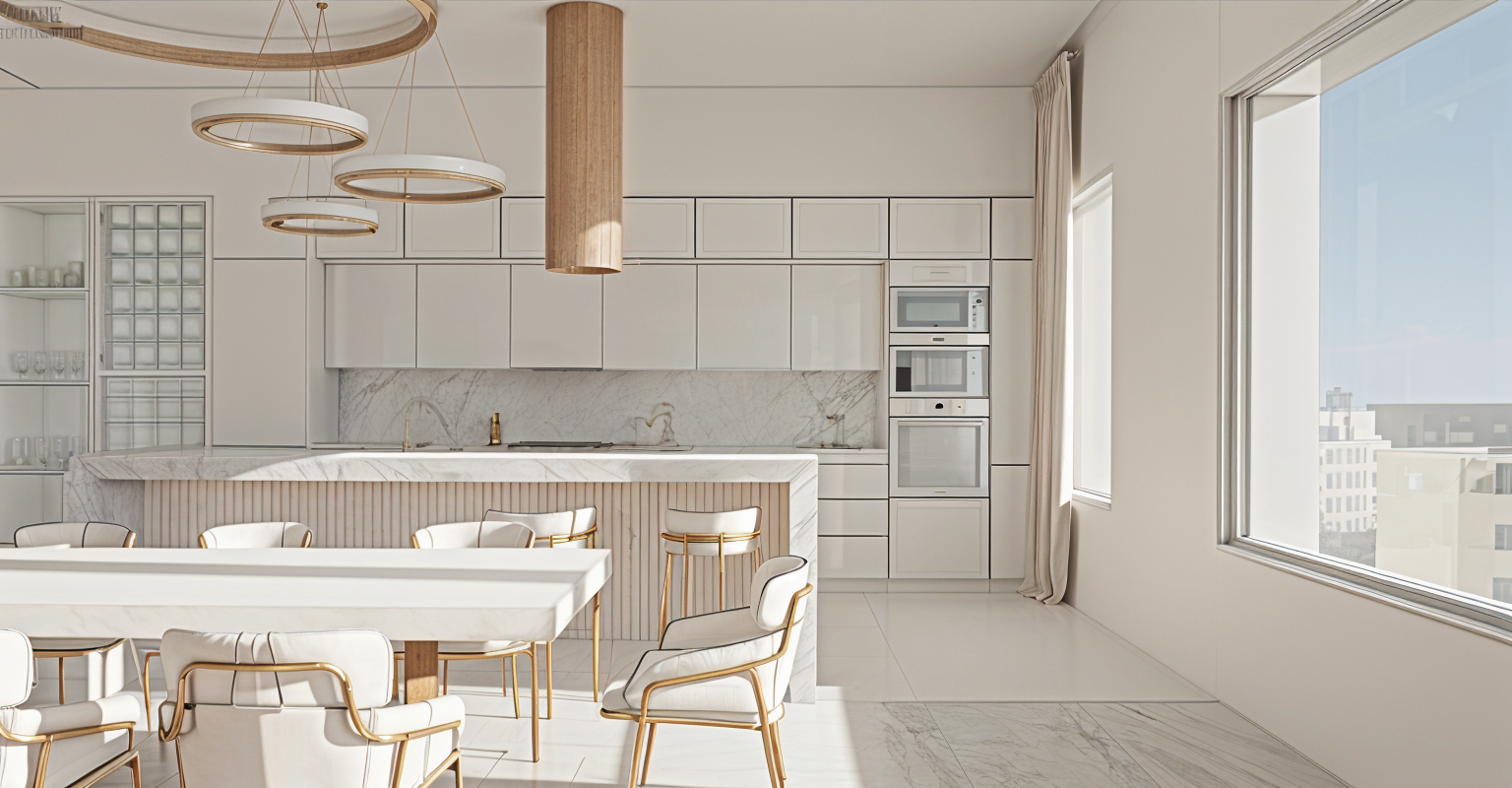 modernist exterior shot modern minimalist building with a flat roof large glass windows and horizontal brick pattern render the bricks in a soft ivory color add a smooth white concrete roof the large window is transparent reflecting a serene blue sky the smaller window on the side echoes the same transparency surround the building with lush green grass and a few ornamental shrubs the setting is a clear sunny day with soft shadows creating a calm and inviting atmosphere architecture