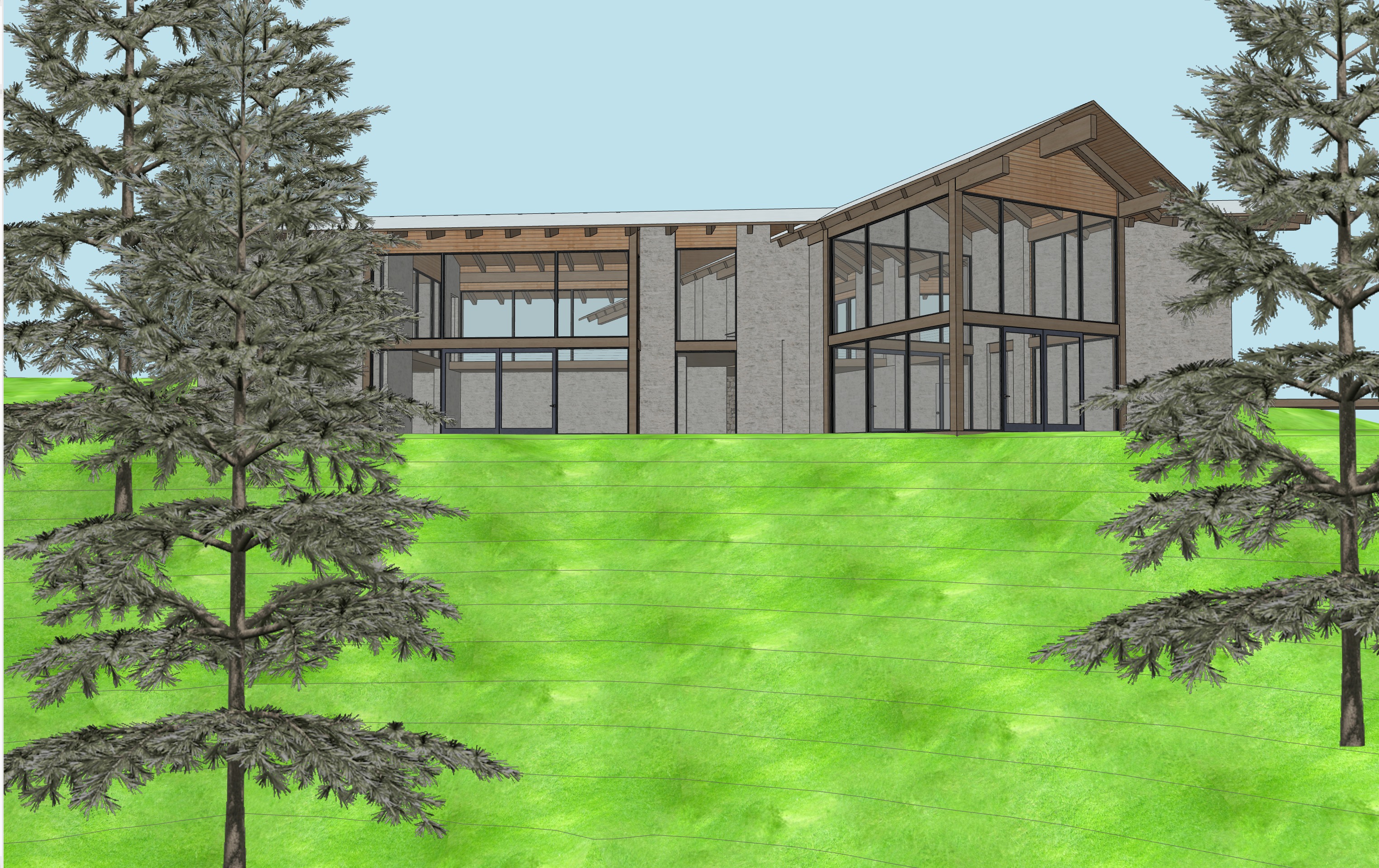 prairie grasses beautiful lighting light colored stone with heavy grout rolling forested hills in background