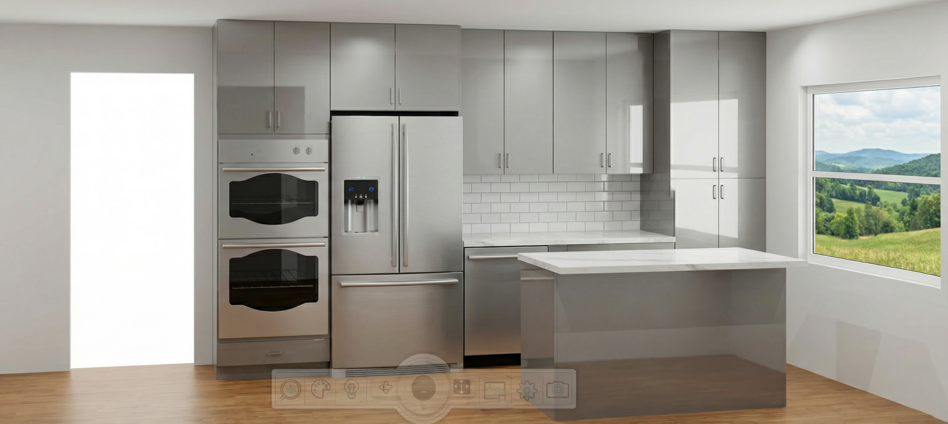 white window trims large timber frame aesthetics add a cupola and some landscaping make realistic make siding board and batten pine move cupola to peak of roof line driveway along front of house off the porch 2 car garage on left side this is an old bank barn we are converting to a residence add 2 dormers on the front