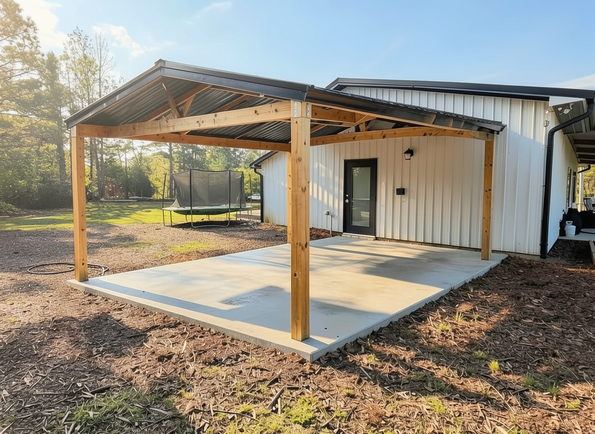 extend the concrete pad and carport back deeper toward the trampoline so that it is spaced the same from the back as the front