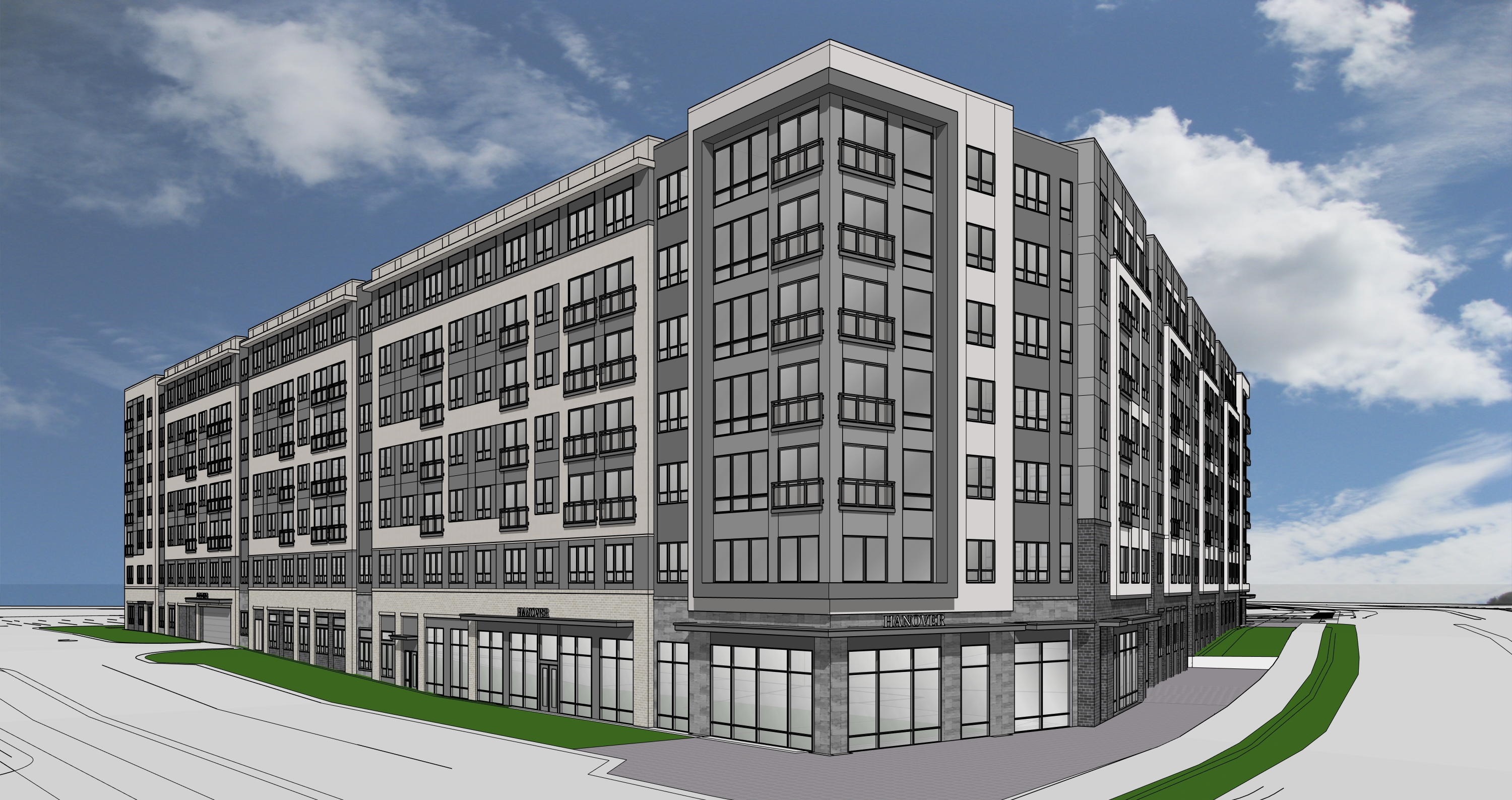task enhance and embellish the provided building design into a photorealistic architectural masterpiece style art direction high end architectural photography archdaily editorial style 4k high resolution ultra detailed and implementation feasible components main subject a modern apartment building setting situated in a suburban moderate climate woodsy backdrop during the golden hour with long soft diagonal shadows details add physical material micro details like visible brick definition concrete pores visible panel definition and realistic reflections on glass surfaces lighting middle of the day day lighting lighting does not interfere with natural colors of things a few minimal sun rays from the corner are fine but not to overwhelm the image color color balance the photo warm and cold color tone mixtures and good contrast constraints maintain the exact structural silhouette of the original design no over smoothing or plastic ai look prioritize raw unretouched texture fidelity ensure all structural lines are perfectly vertical and parallel no lens distortion add people and additional entourage to show a lively scene