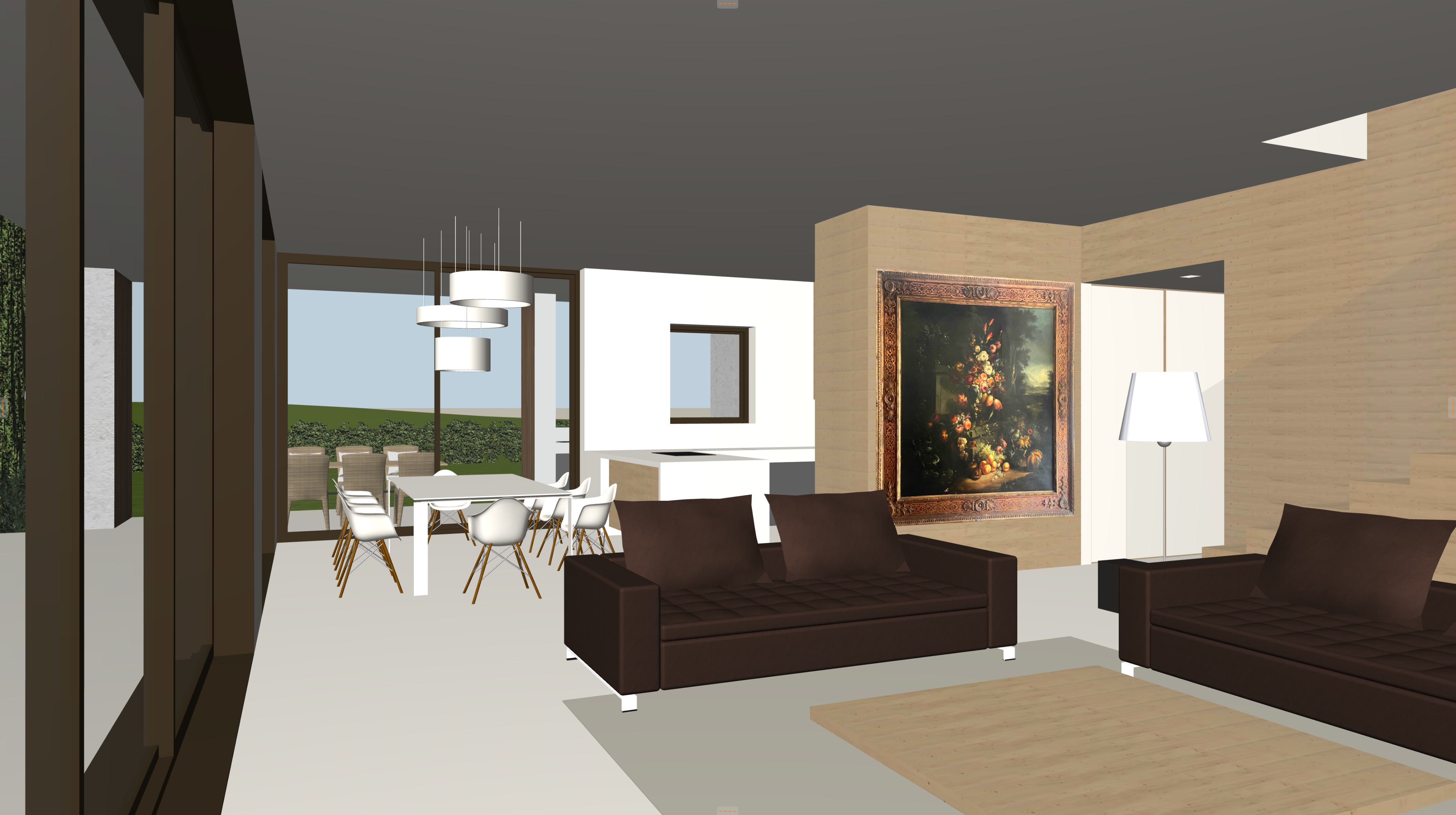don t make the ceiling shiny vary the wood texture avoid knots it should be less repetitive make the carpet a dove gray place a spotlight above the painting