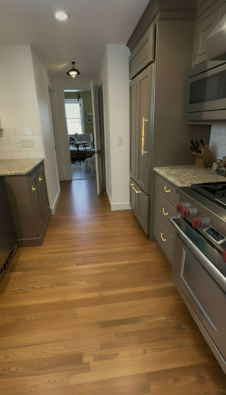 add a traditional runner down the center of the kitchen in beige alive green and navy blue
