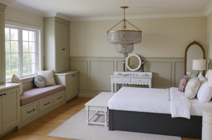 make bed frame grey blue felt make whole vanity white cabinetry goes down to the floor
