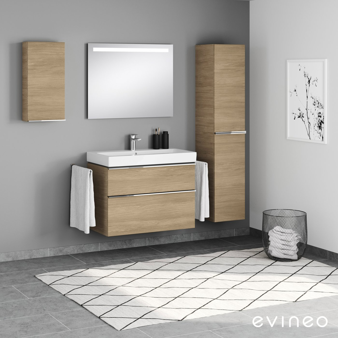 photorealistic bathroom mirror in an industrial workshop setting a minimal black vinyl frame sticker is applied around the mirror edges centered bold german text on the mirror verantwortlich f r qualit t arbeitssicherheit du clean modern sans serif font high contrast black on mirror surface a person is visible in the reflection reinforcing the message natural lighting realistic materials sharp focus professional look subtle humor