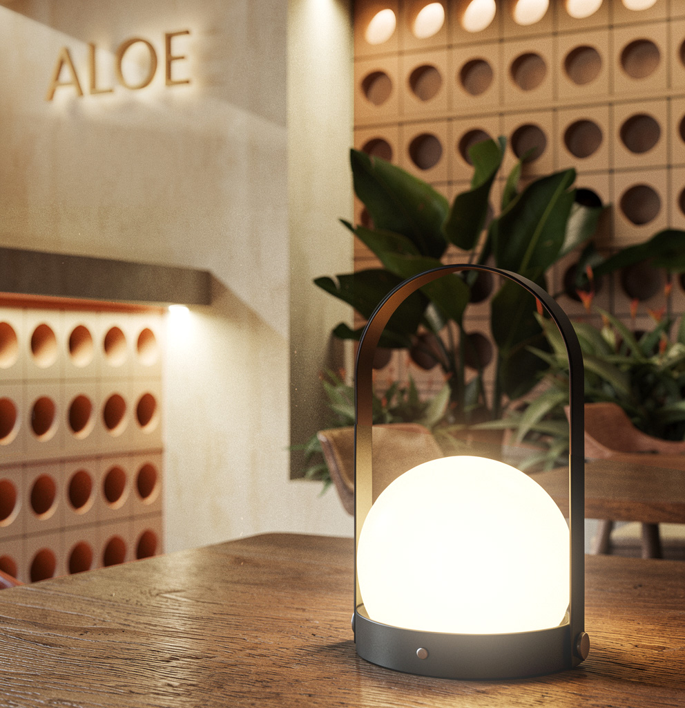 photorealistic edit of the input image strict constraints highest priority keep the image exactly the same same composition camera lighting colors materials and depth of field do not modify any element except the aloe logo target modification replace the aloe sign material and lighting remove any backlight or glow completely convert the letters into natural wood oak letters matte finish subtle wood grain visible warm natural wood tone similar to the furniture in the scene no emission no halo no brightness increase the logo must look like solid wooden letters mounted on the wall lit only by the existing ambient light reference consistency match the material appearance of the wooden elements seen in the reference image tables and chairs same tone same grain same finish important do not change wall color or texture lighting intensity or direction shadows background elements only update the logo material and remove illumination rendering seamless integration physically accurate indistinguishable from original scene negative prompt glow backlight emissive neon metal gold plastic glossy finish lighting change exposure change color shift