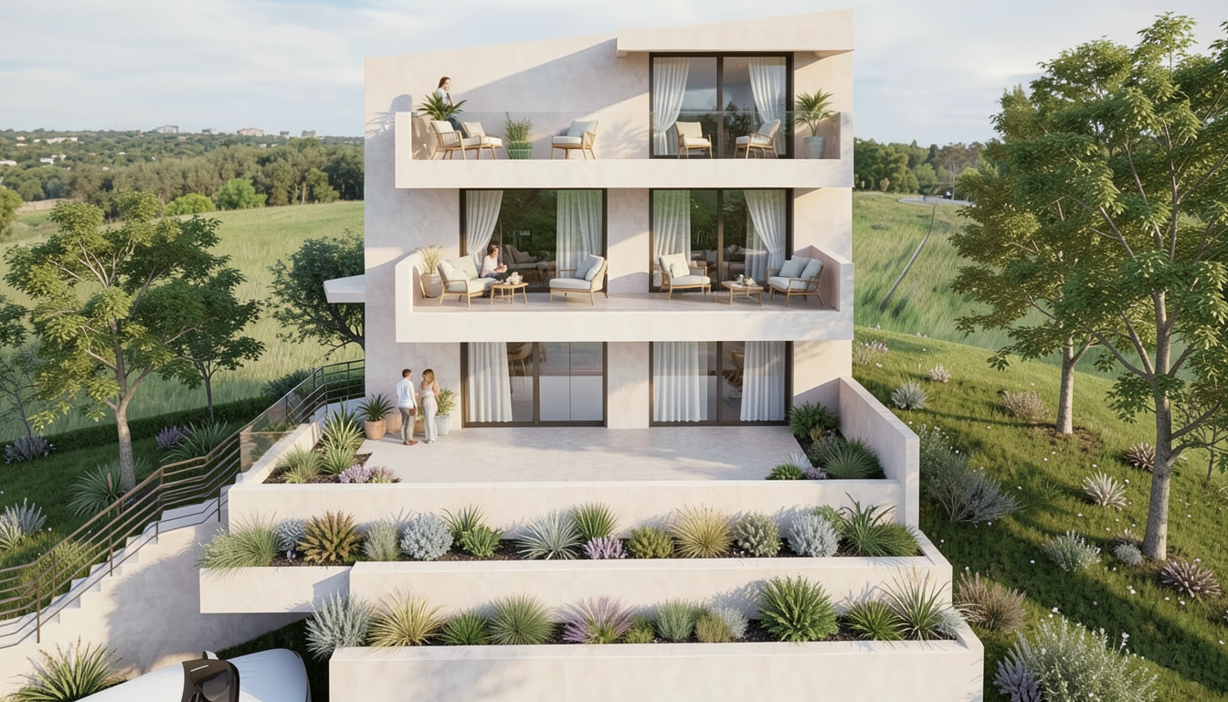 make as photorealistic as possible while keeping textures the same as selection professional landscaping in greensboro nc with good lighting match materials to plan and remove any text siding 746f6c trim c1c1be windows white roof colonial slate certainteed posts and railings 4e5436 brick painted 746f6c 11am