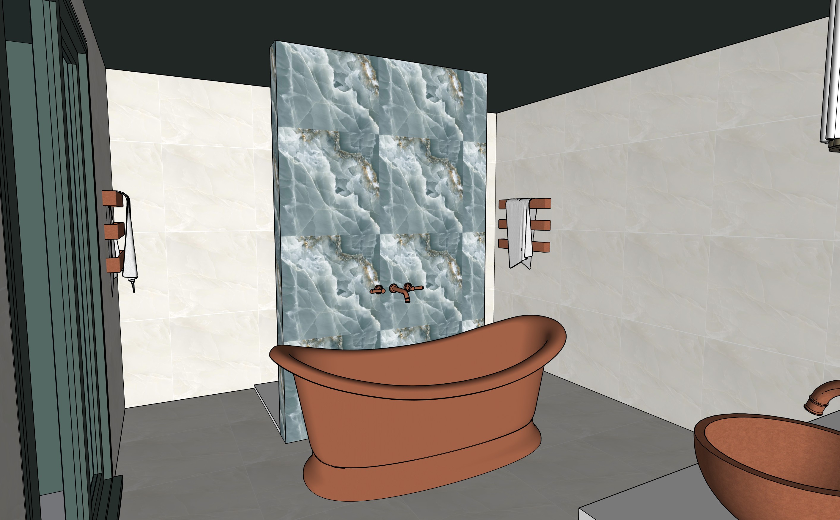 can you turn this into a hand drawn sketch using watercolour the feature wall behind the bath needs to be reflective of light
