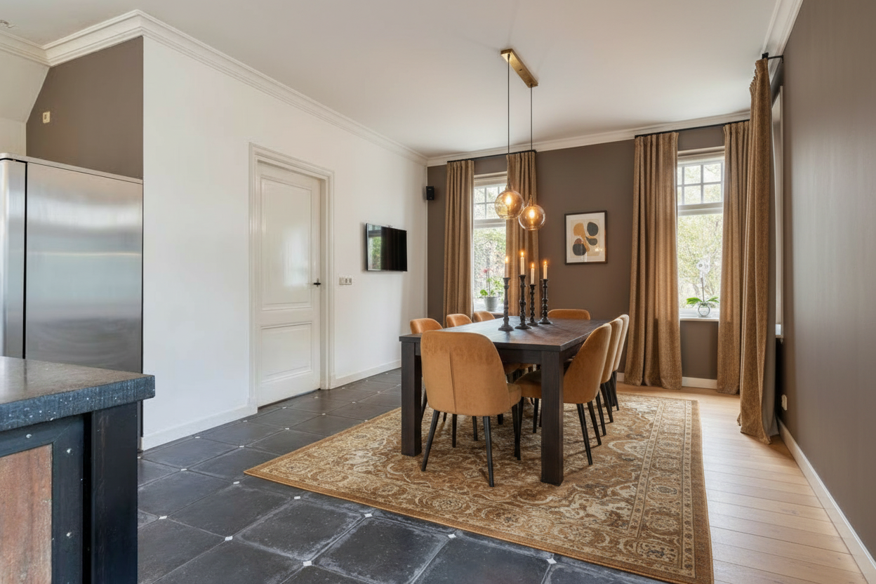 realistic design render for kitchen do not add any ceiling lights add strip light shining up not shining down behind coving