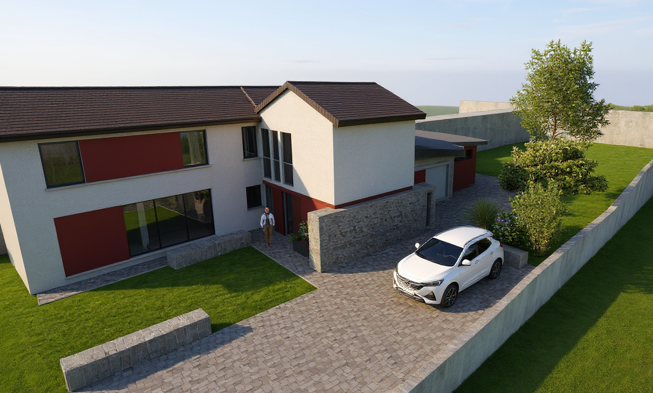 replace the garage door with a glass door with two fixed panels and a swing door and add climbing plants in a large pot