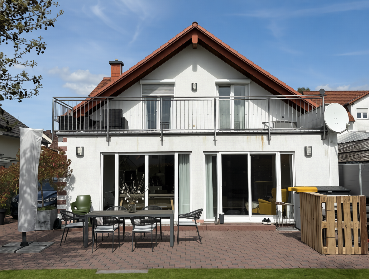 house in greige edgestones at the left corner of the house in darkgrey