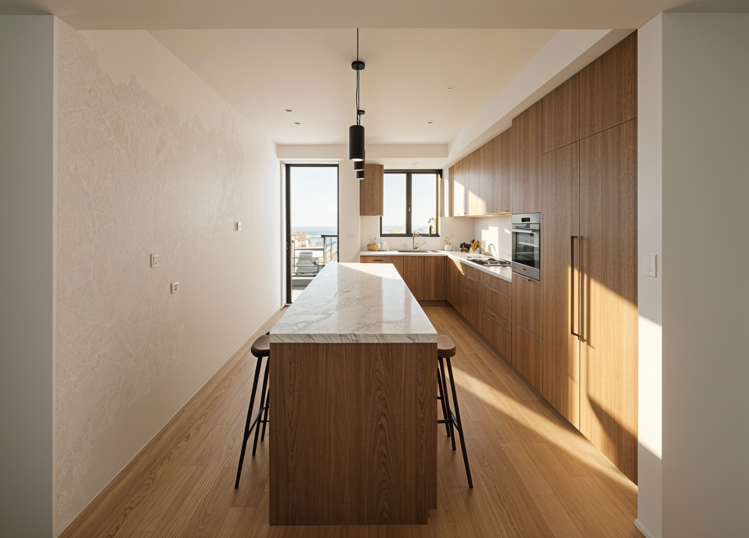 a high resolution photorealistic architectural render of a six storey social housing building conceived as a calm contemporary urban block with a strong civic presence the composition is rational restrained and materially expressive suitable for long term public housing the lower two floors are articulated as a continuous light coloured plinth finished with a subtle vertical texture giving the building a grounded tactile base and reinforcing human scale at street level the base reads as warm durable and carefully detailed planting is introduced at the base of the building softening the plinth and reinforcing the relationship to the public realm above the upper four floors are rendered in smooth white plaster light and understated allowing the building mass to feel calm and refined while clearly contrasting with the terracotta base a horizontal band separates the plinth from the upper floors creating a deliberate shadow gap that clearly articulates the base and adds depth to the fa ade window and door openings are consistently framed in coloured surrounds reinforcing material continuity across the fa ade balconies are expressed with a recessed edge detail creating shadow lines that add depth and rhythm to the elevation balcony railings are slim metal elements finished in matching natural tones precise and minimal contributing to a cohesive architectural language rather than decorative effect vegetation is integrated across the fa ade in a loose non uniform manner with plants placed along selected balconies and fa ade points adding softness depth and a lived in quality without appearing overly designed at ground floor level a modest front garden with layered greenery shrubs and planting mediates between the public realm and private dwellings reinforcing social value and environmental comfort people are shown interacting at ground level and on balconies conveying everyday use community and human scale without dominating the architecture soft neutral daylight with realistic shadows emphasizes material texture recessed balcony details and the shadow gap between base and upper floors the render avoids exaggeration and visual noise presenting the project as credible contemporary and publication ready aligned with progressive models of government led social housing add trees within the 3m deep front garden at ground floor which produce fruit and have colours and indicate a 90cm pavement then road