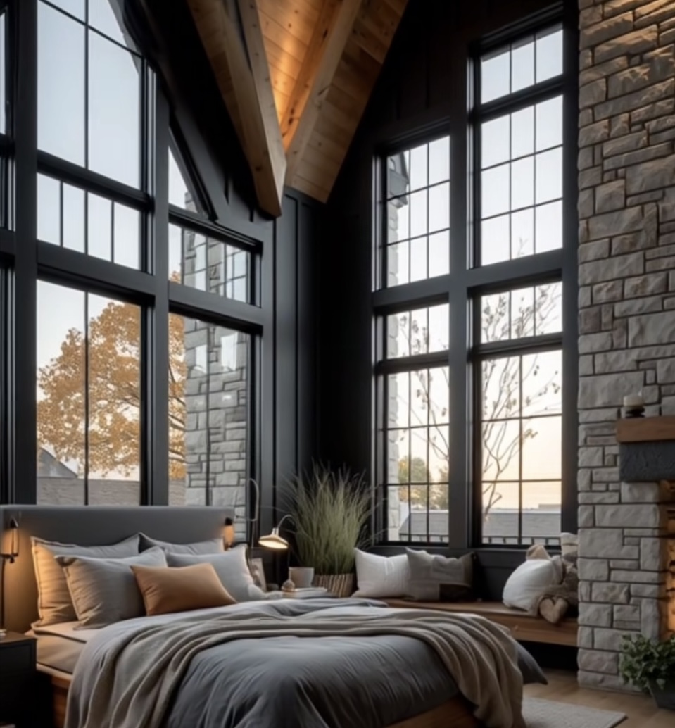 zoom out and show more of the bedroom keep the design the same