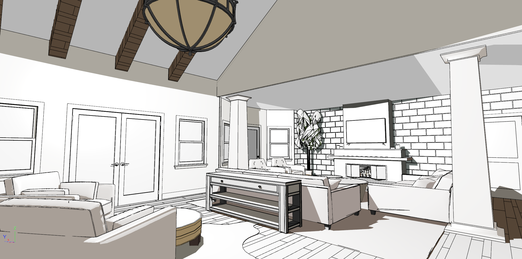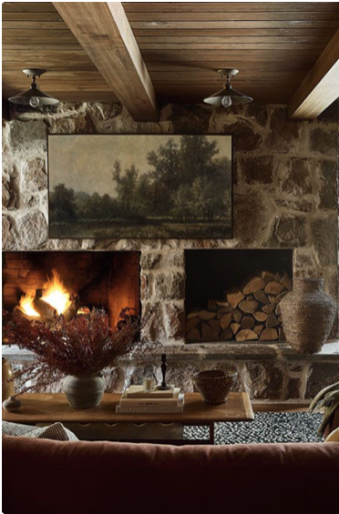 exterior shot add drapes another lighting option a fig tree all wood ceiling stone backwall as shown