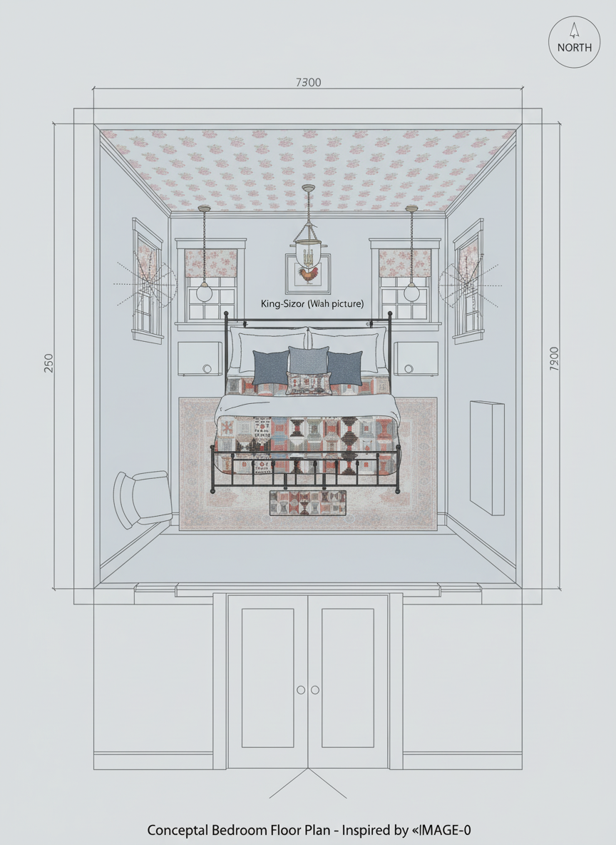 turn this floor plan into a photo realistic floor plan with white sofas dark wood floors the ottomans are gray blue and white plaid the area rug is a neutral colored jute rug