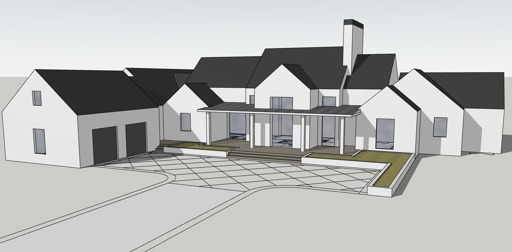 style modern farmhouse exterior white siding with wood accents car in driveway scene sunset