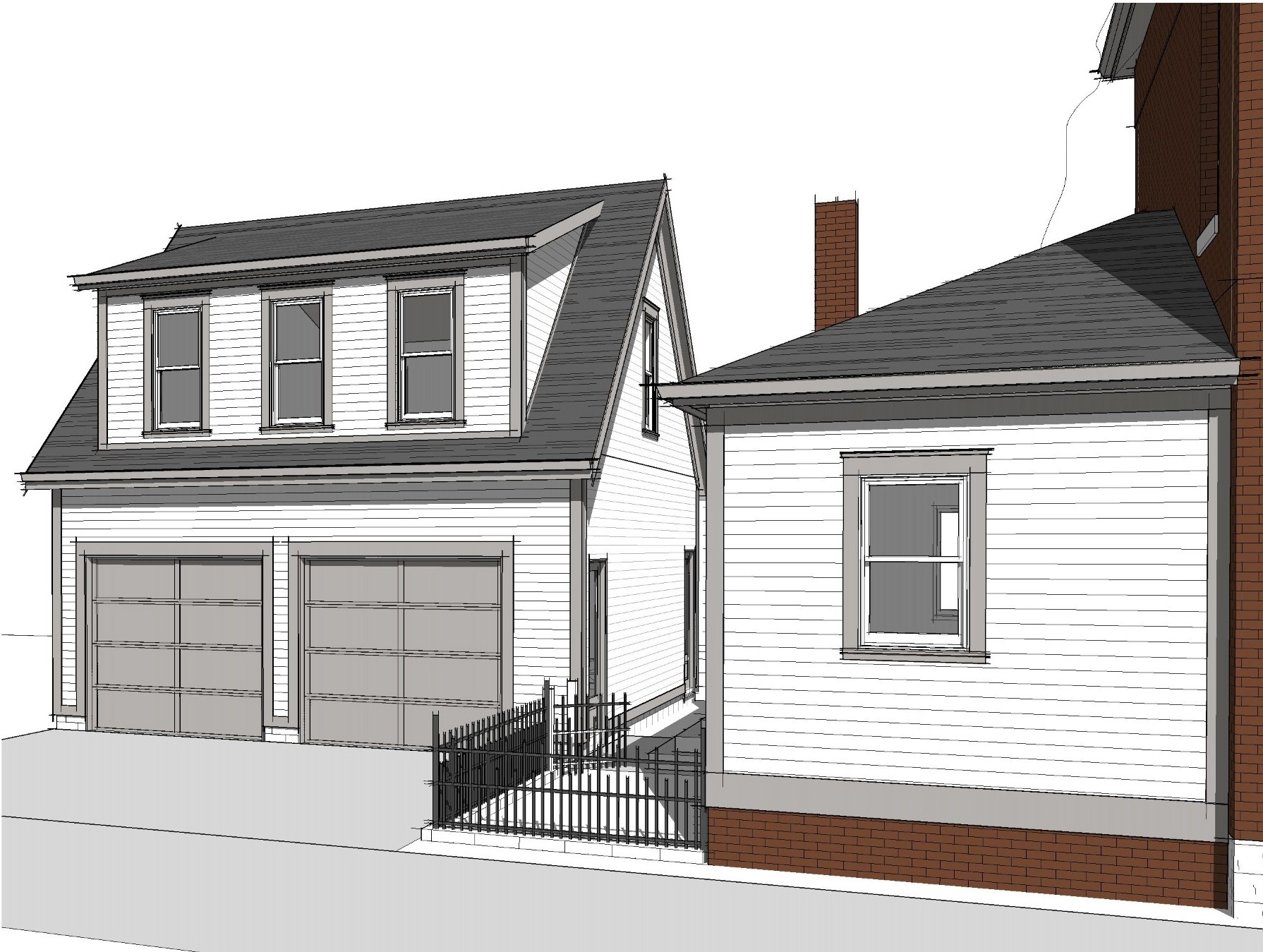driveway runs along the side of the main house