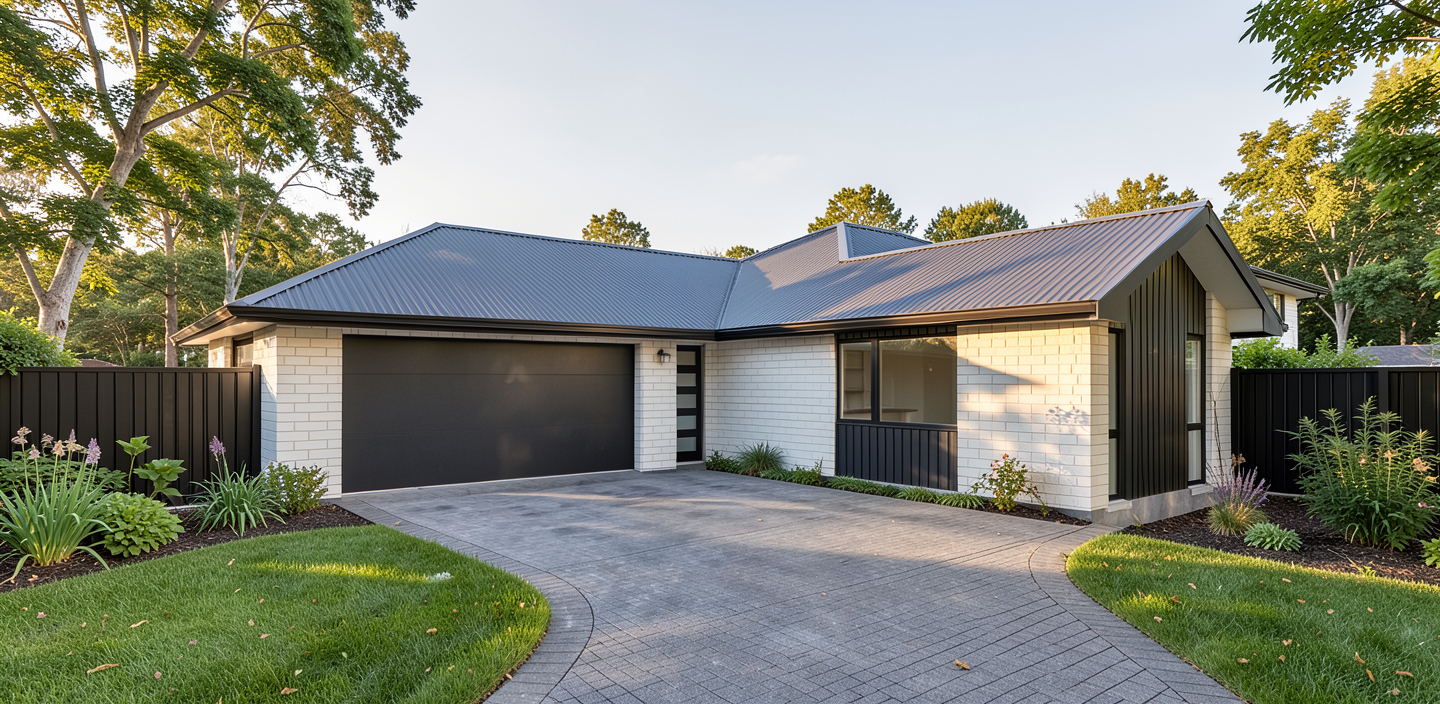 nice evening rendering for marketing a condo project gradient sunset sky building lighting wet streets