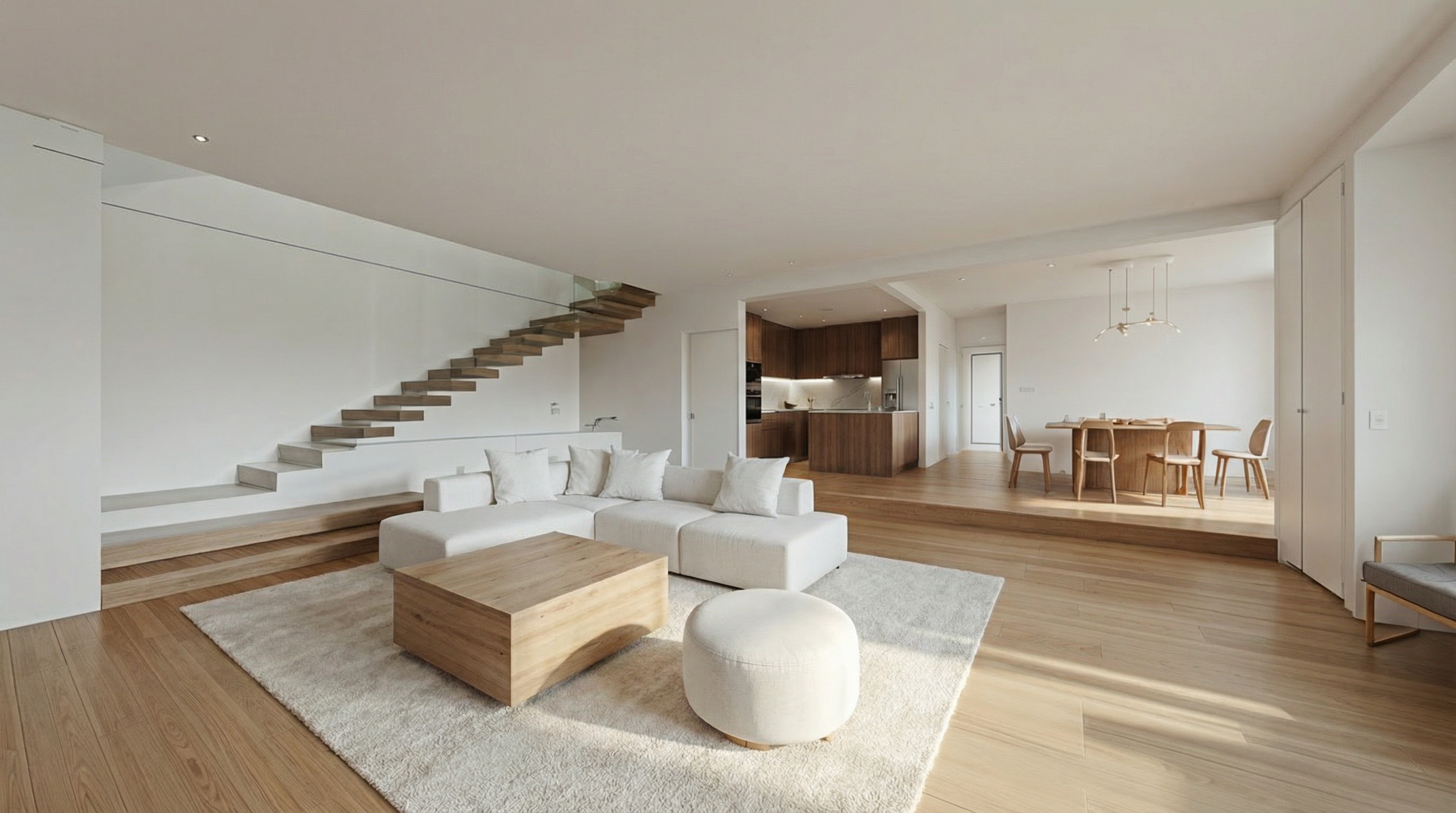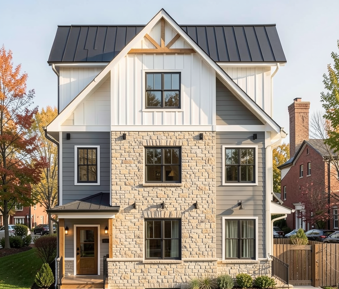 exterior shot keep the exact same objects angle furniture as in the original photo but add the textures from the moodboard inspiration