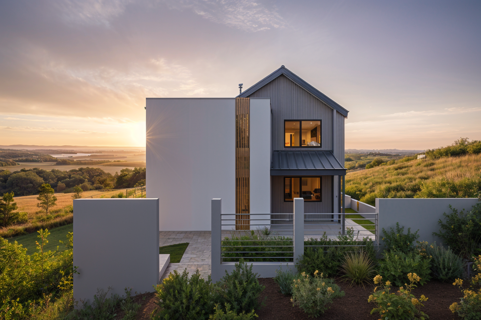grey and white modern render metalic fence smal forest background