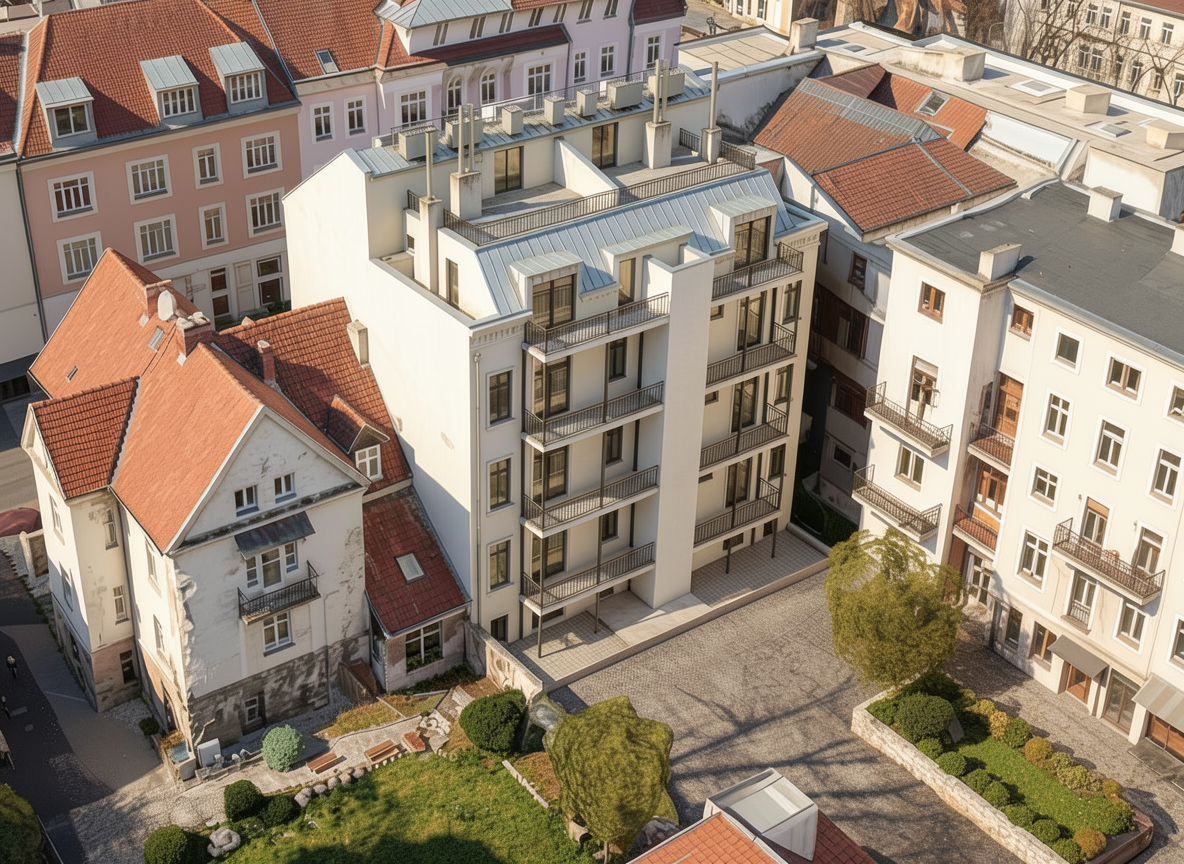 intonaca di bianco sugli edifici dove ci sono segni di intonaco caduto o consumato non devono esserci
