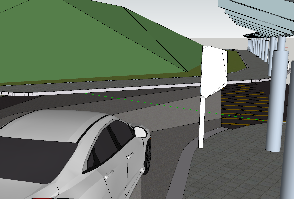 convert this signage design graphic into a realistic 3d external pole signage and render the entire sketchup environment into a photorealistic outdoor scene show the signage in a dynamic perspective view positioned by the roadside with a partial view of a car beside it for scale the signage panel is made of aluminum with a hairline rose gold finish featuring soft bends as shown in the design reference shading the supporting pole is painted in a black semi gloss finish add realistic trees shrubs and roadside landscaping to enhance the environment signage dimensions 540 mm wide 2250 mm tall render using archsynth architectural realism natural daylight cinematic depth photorealistic materials accurate reflections and cohesive lighting integration within the full sketchup environment architecture