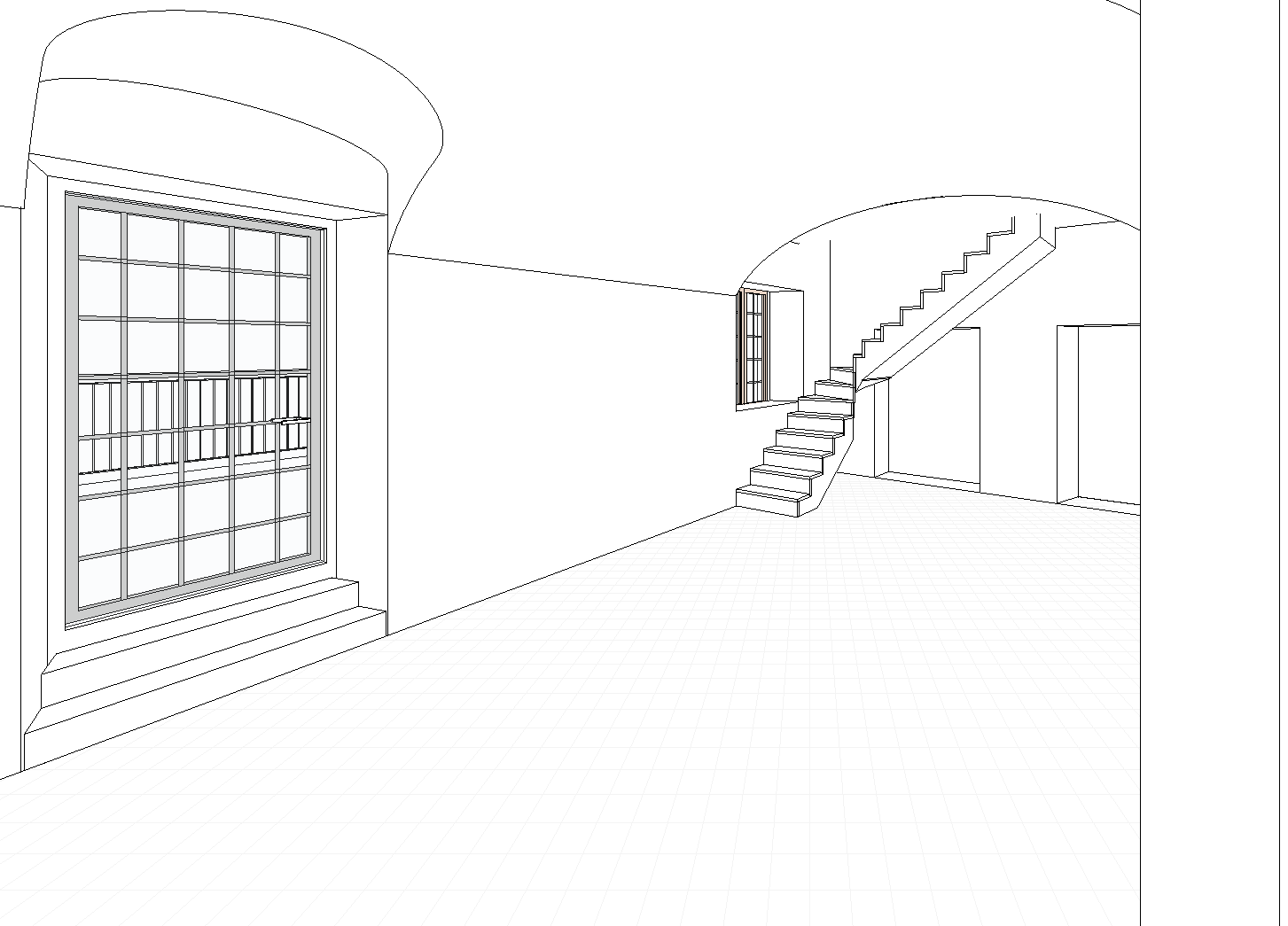 mediterranean revival interior shot crea un render fotorealistico a partire da questa vista in 3d le finestre sono in legno il soffitto una volta a botte in mattoni rossi sulla parete tra i due divani c un camino antico il pavimento in parquet color noce all esterno fuori dalle finestre si vede un giardino siamo al piano terra i due vani sotto la scala sono cantinette per il vino o librerie posizione due divani uno di fronte all altro in mezzo alla stanza e centrati sul caminetto aggiungi qualche pianta da interno e qualche oggetto una casa vissuta architecture