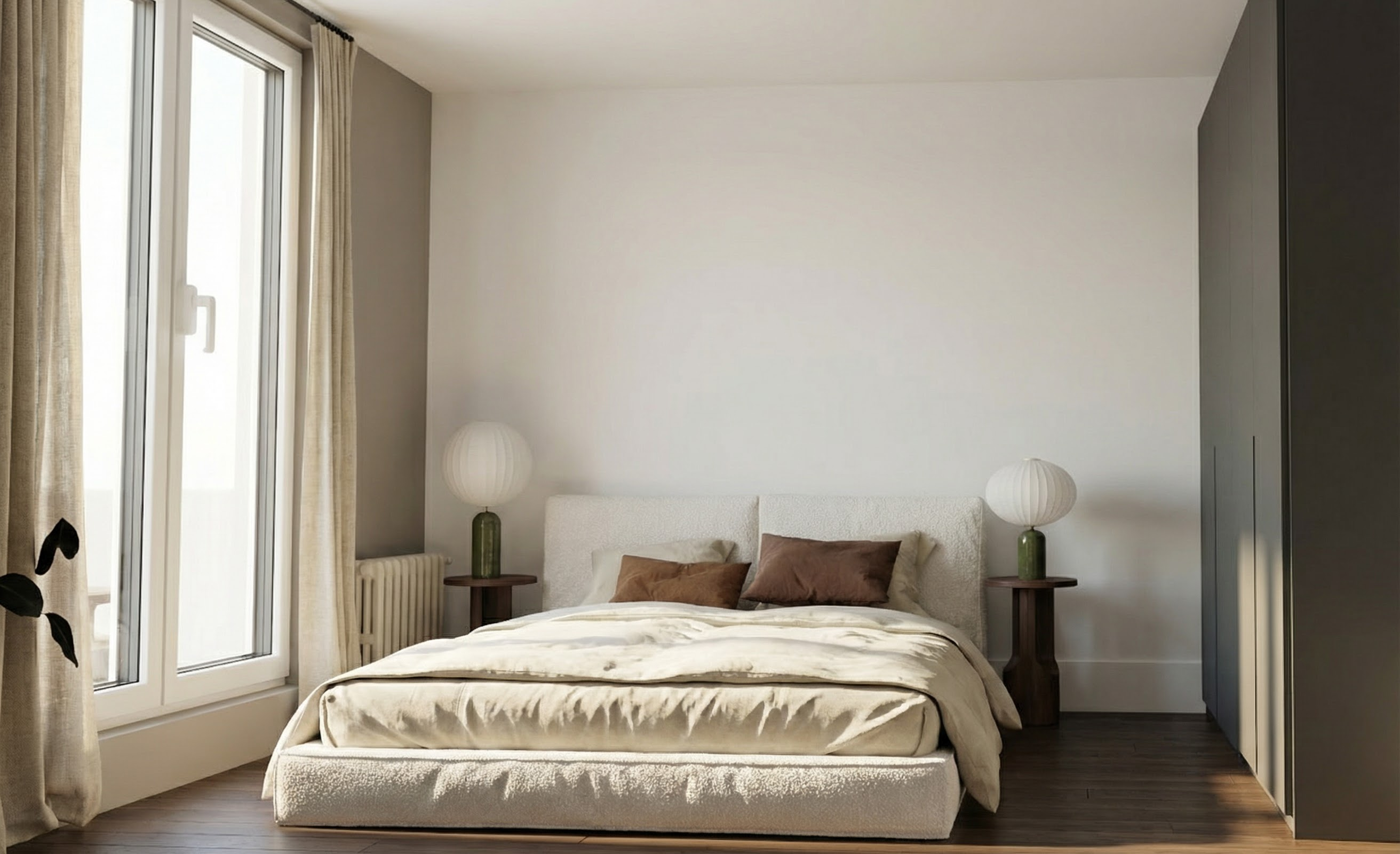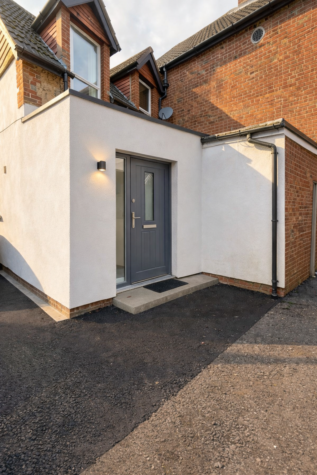 place a grey window on the side return wall which is on the far left of the picture