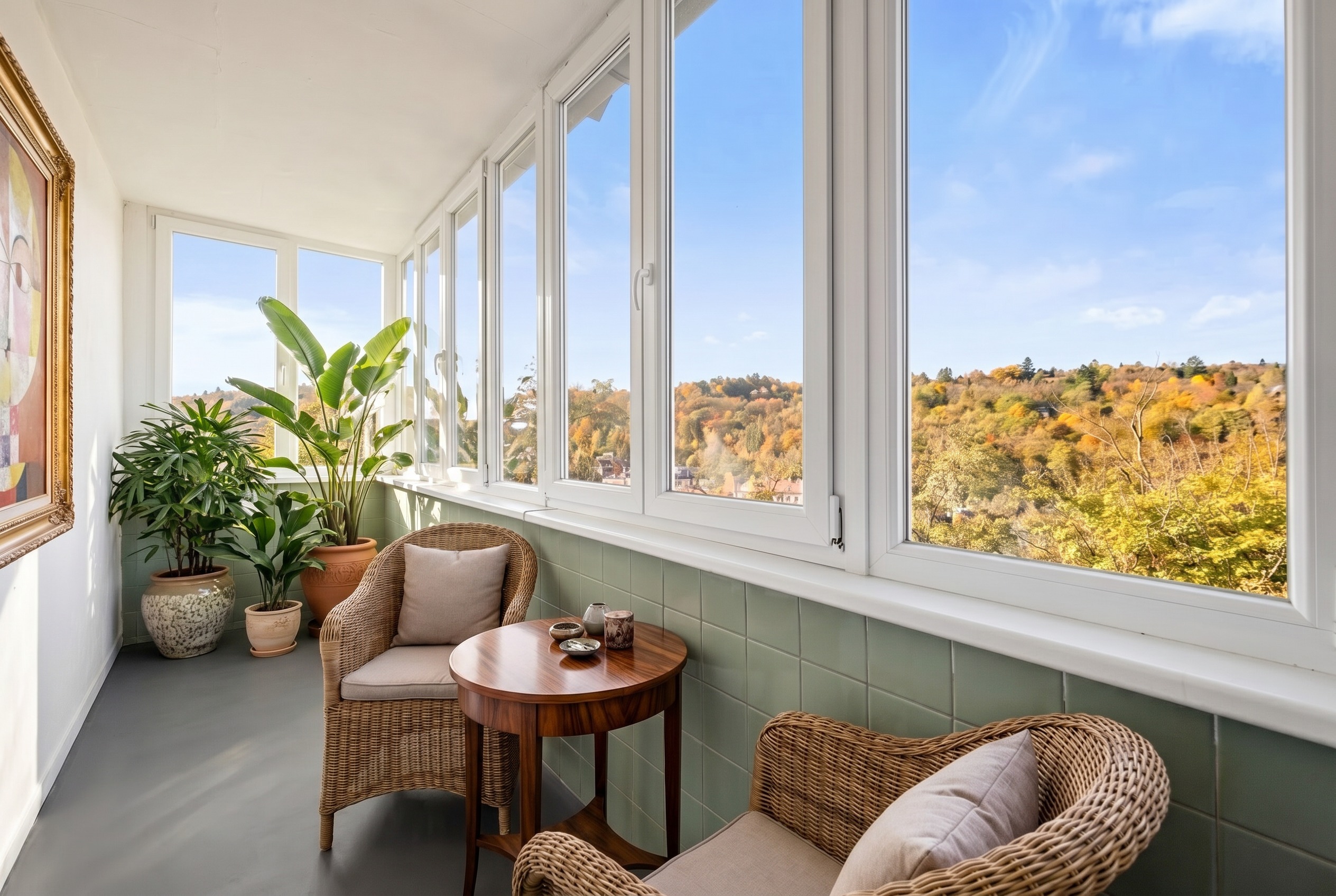 p idej vysokou rostlinu v lev m zadn m rohu p idej v ce exotick ch rostlin pod l b l st ny vlevo na podlaze vykresli d ev n terasov tverce vykresli k esla jako m rn v t prout n s b lou barvou jejich styl ponechej p idej na n pol t ky se zlatav m motivem obraz na zdi ponechej