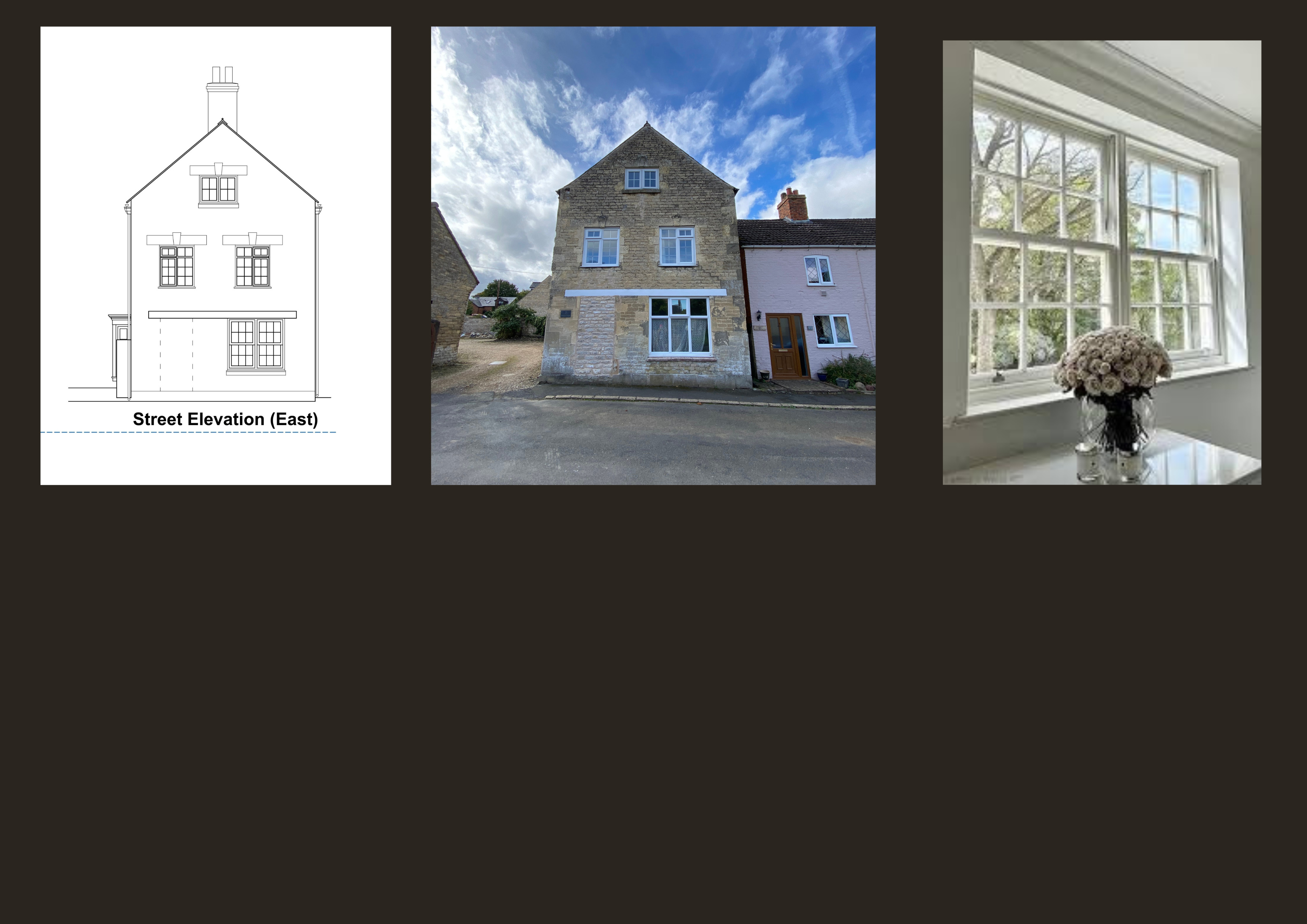 exterior shot keep the building windows and stonework the same as the source drawing use the mood board for materials and landscape setting