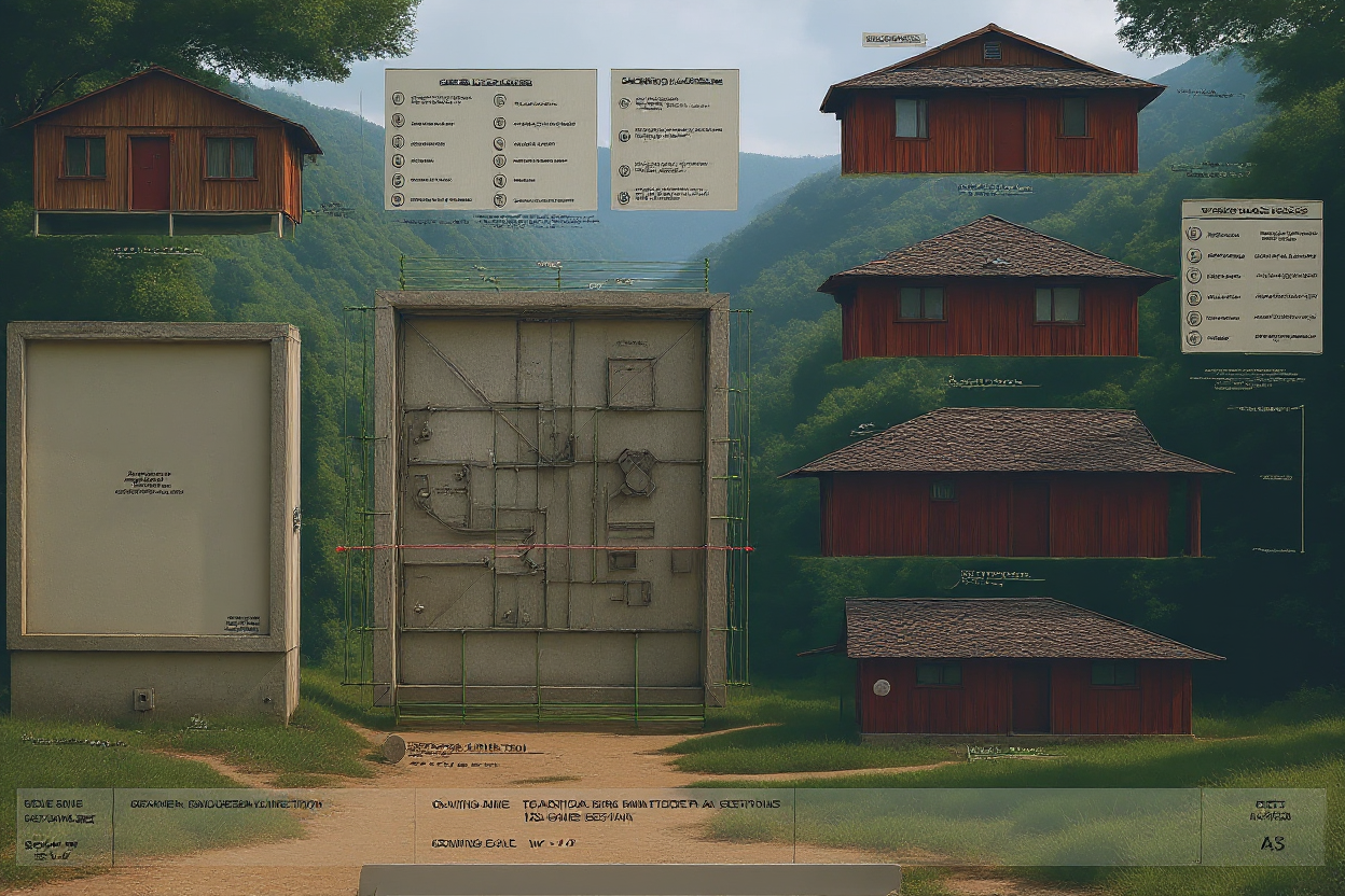 a living room and kitchen wardrobe box terracotta finish material of central box carpentery wooden planks flooring french oak light concrete parts of panel walls with rought design of iron beams rest of ceiling and walls white plaster sunrise mood morning lighting