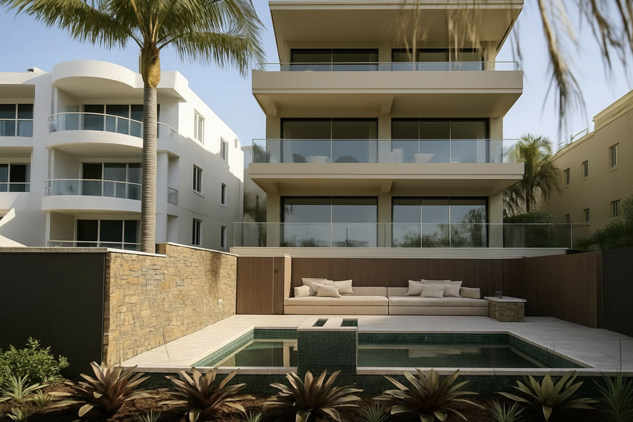 make pool tiling into crazy pave stone tiling between the two pools should be the same blue tile as the internal pool