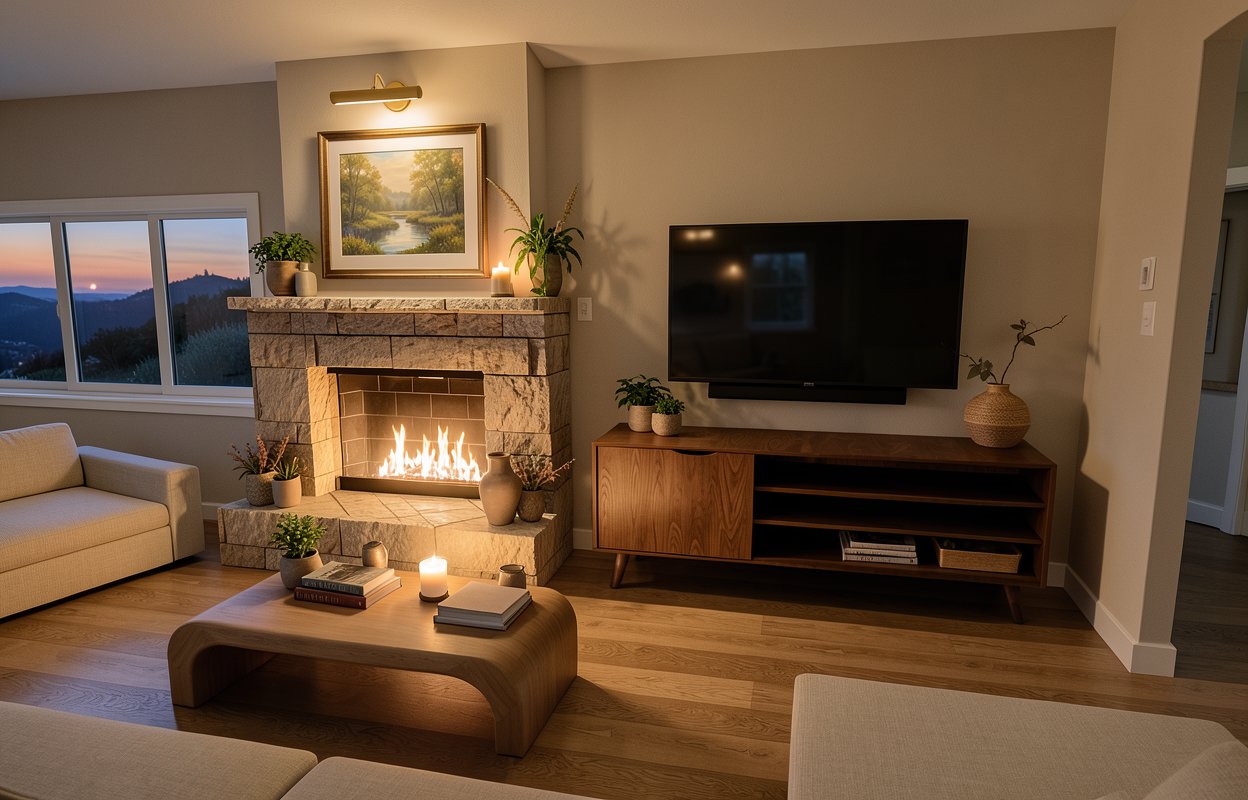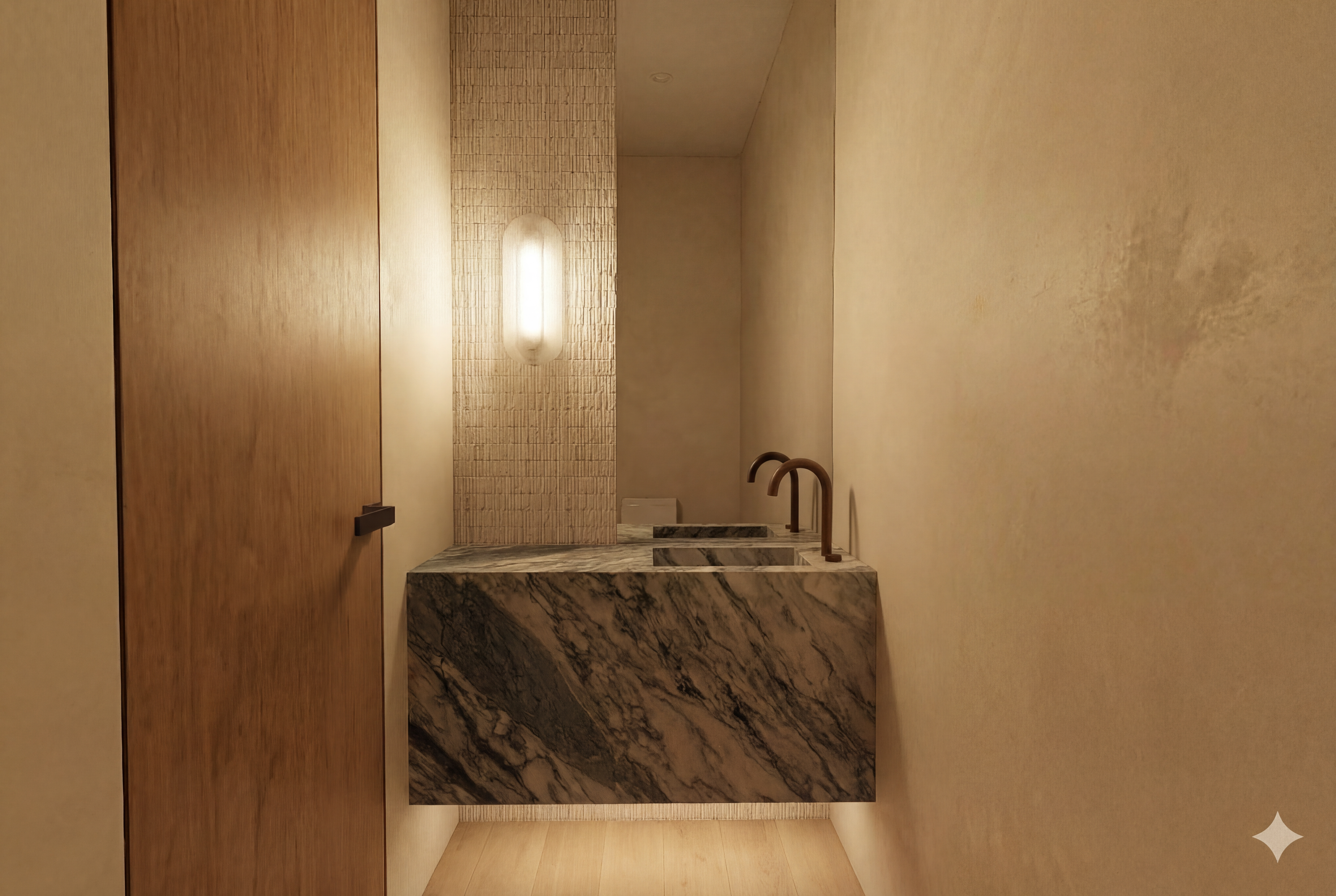 this is a coastal style bathroom with white penny tile floors the countertops are white marble with light grey veining the hardware is polished nickel the walls are painted with benjamin moore white dove there should be two rectangular mirrors above the sinks with a sconce in between the mirrors the cabinets are sherwin williams repose gray the cabinet doors should have polished nickel round knobs and the drawers have simple pulls